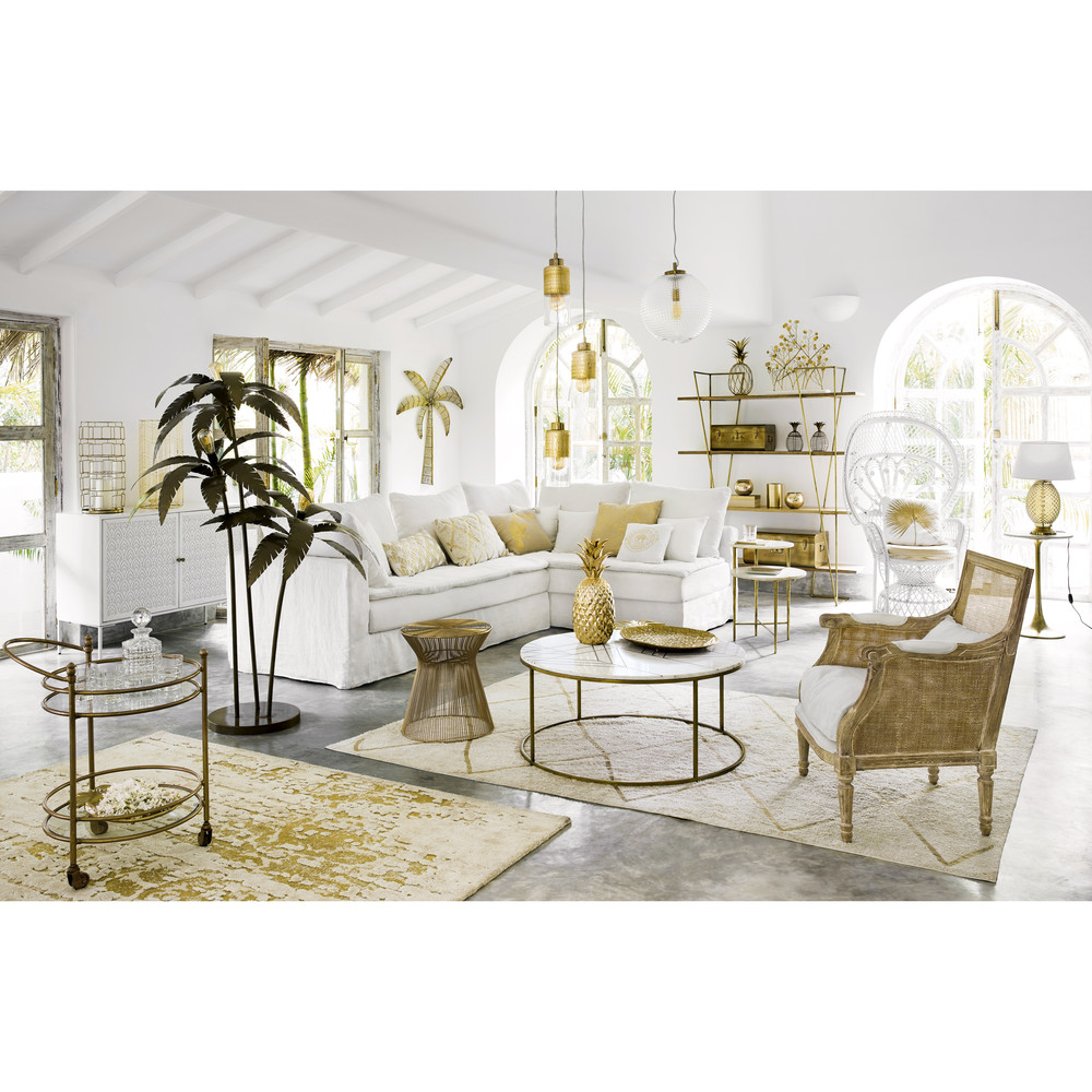 Nothing beats the white cotton cushion with golden graphic patterns ART DECO to bring a chic touch to your exotic decor. Its cotton cover and plush filling will ensure plenty of comfort during your relaxation breaks. All that’s left is to let this rectangular cushion beautify your living room or bedroom with grace.