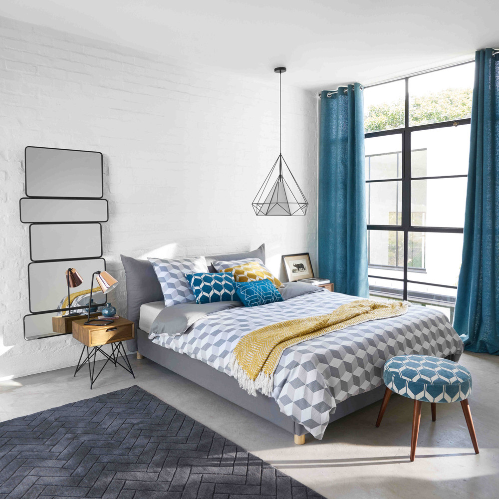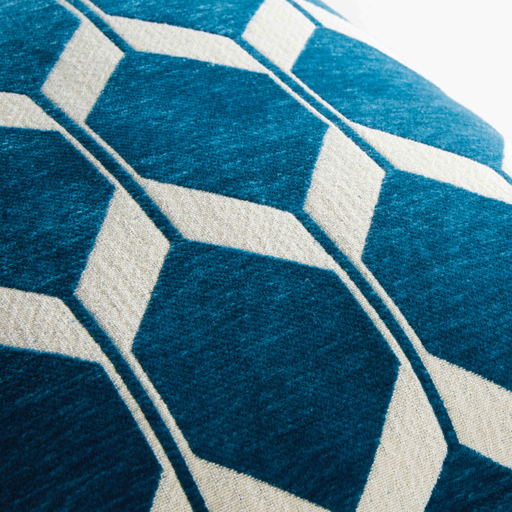 Le coussin motifs bleu canard ASTON s’harmonisera parfaitement avec un intรฉrieur aux influences scan