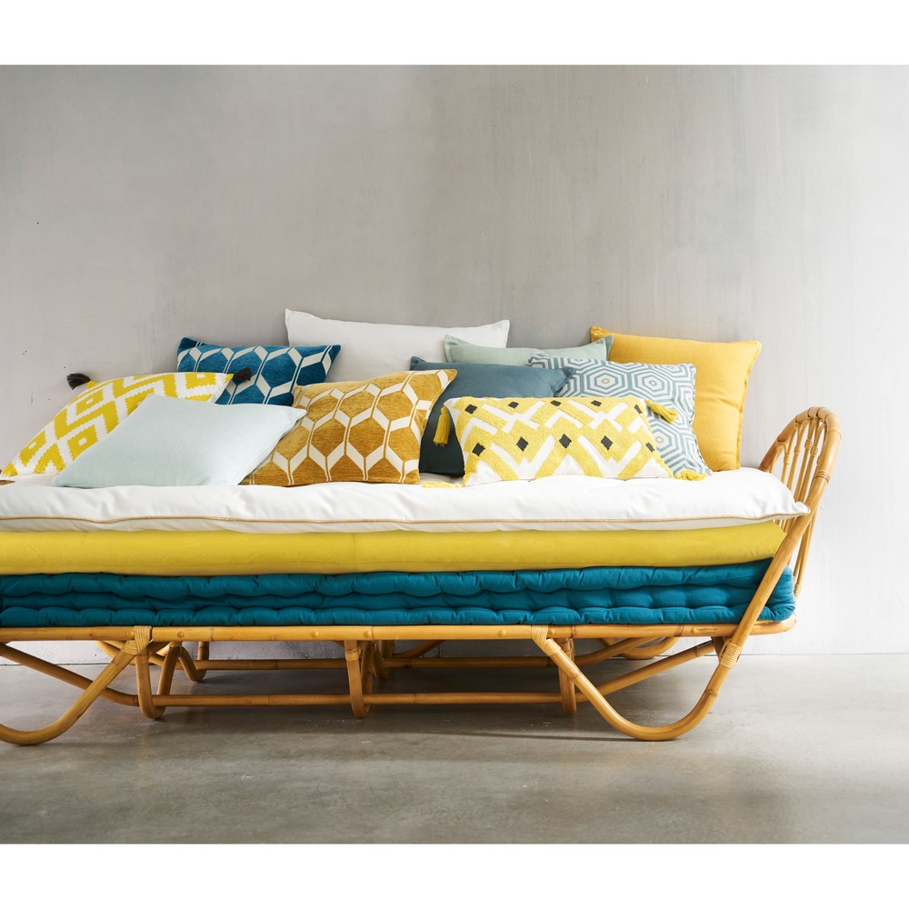 Le coussin motifs bleu canard ASTON s’harmonisera parfaitement avec un intรฉrieur aux influences scandinaves. Clin d’ล“il au style vintage, ce coussin bleu canard ajoutera une petite touche graphique et sophistiquรฉe dans votre espace dรฉtente. Vous aimerez les motifs originaux de ce coussin graphique. ร€ mixer avec d’autres coussins dans le mรชme esprit afin d’accentuer l’esprit gรฉomรฉtrique de votre piรจce ! Pour renforcer l’ambiance cosy de votre salon, optez pour un tapis parmi notre sรฉlection.