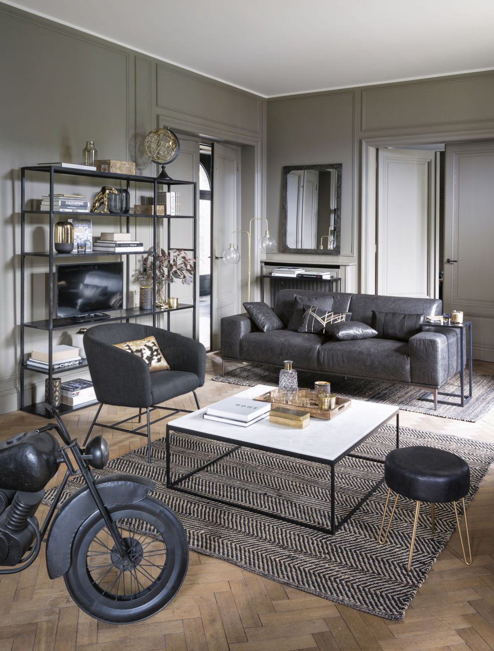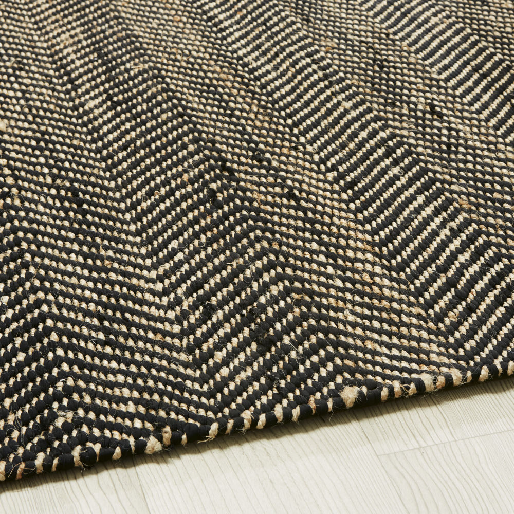 Parรฉ de motifs ร chevrons, le tapis en coton et jute noir et marron 140×200 BARCELONE sera le nouvea