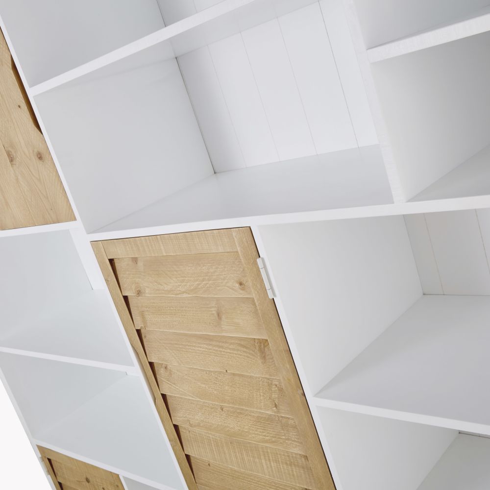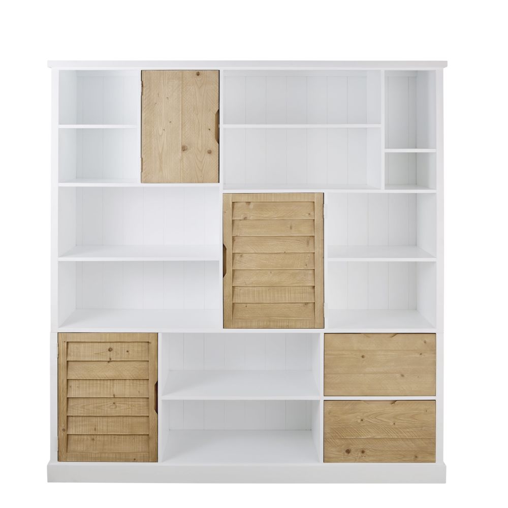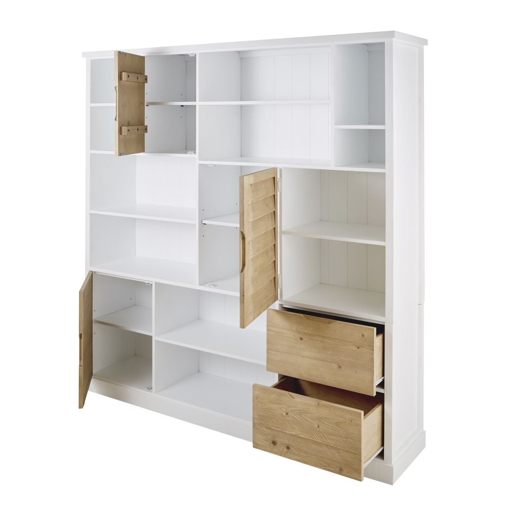 Le bois de ce meuble est certifiรฉ FSC. Ce label garantit que le bois est issu dโ€™une forรชt gรฉrรฉe de faรงon responsable : vous aussi, participez ร  la prรฉservation des forรชts et de la biodiversitรฉ en choisissant ce produit. Que diriez-vous d’une dรฉco ร  l’esprit bord de mer ? Adoptez la bibliothรจque 3 portes 2 tiroirs bicolore ESTEREL et composez votre intรฉrieur aux couleurs de l’ocรฉan ! Cette bibliothรจque allie un fond en lattes, une teinte blanche et des portes et tiroirs en รฉpicรฉa massif avec beaucoup de justesse. Mixez cette bibliothรจque avec un fauteuil en rotin, quelques coussins bleu marine et un coffre en bois pour crรฉer une dรฉco esprit cabane de pรชcheur. Il ne vous reste plus qu’ร  remplir cette bibliothรจque avec tous vos trรฉsors !
