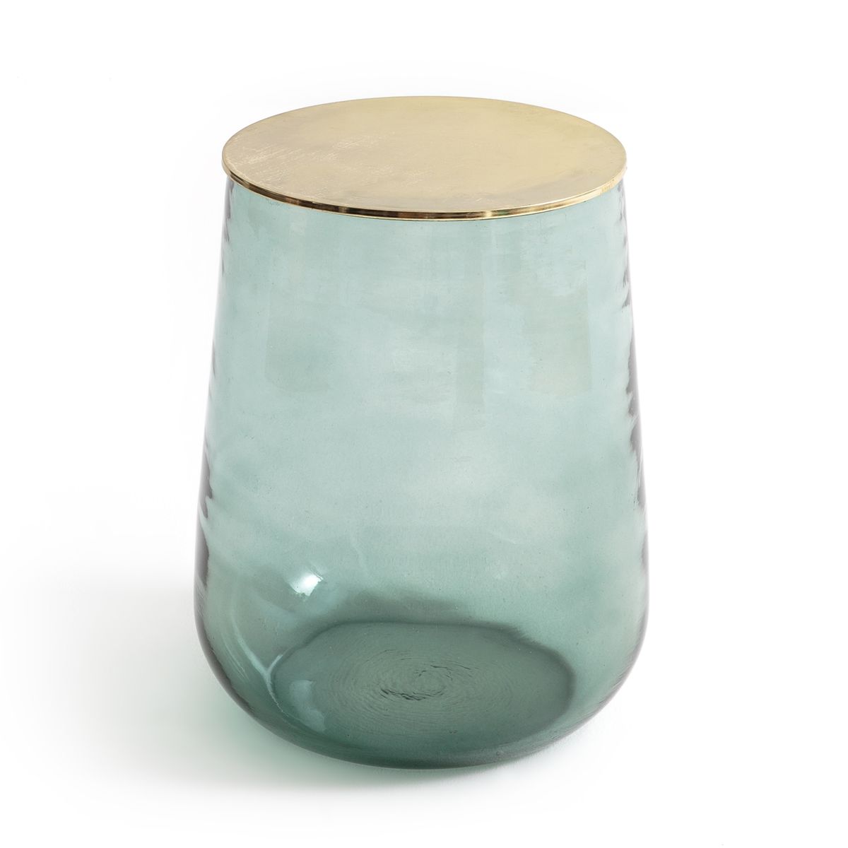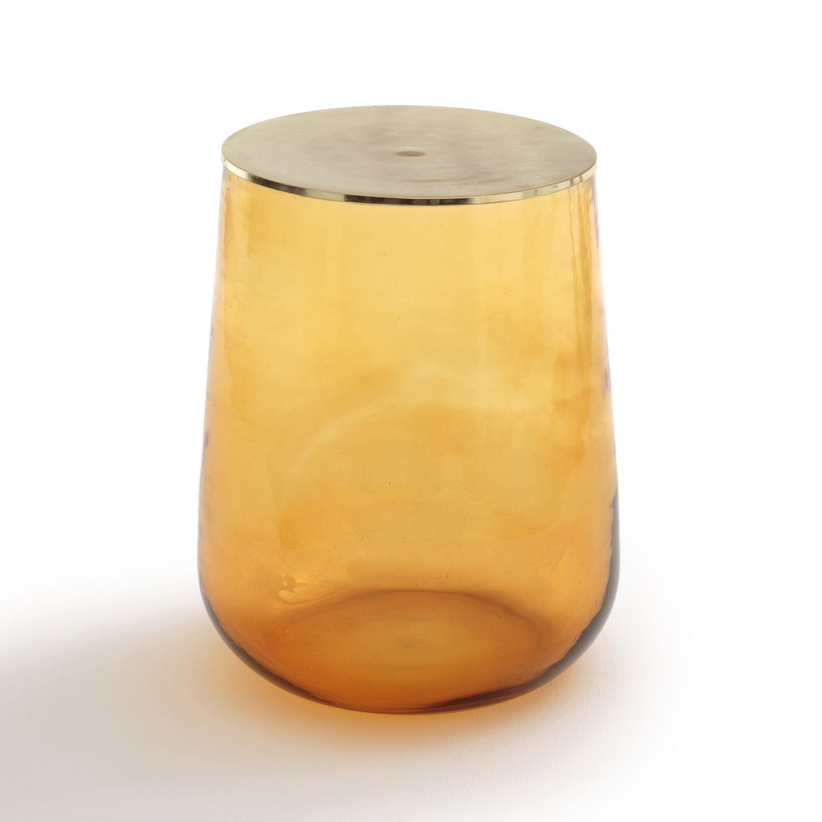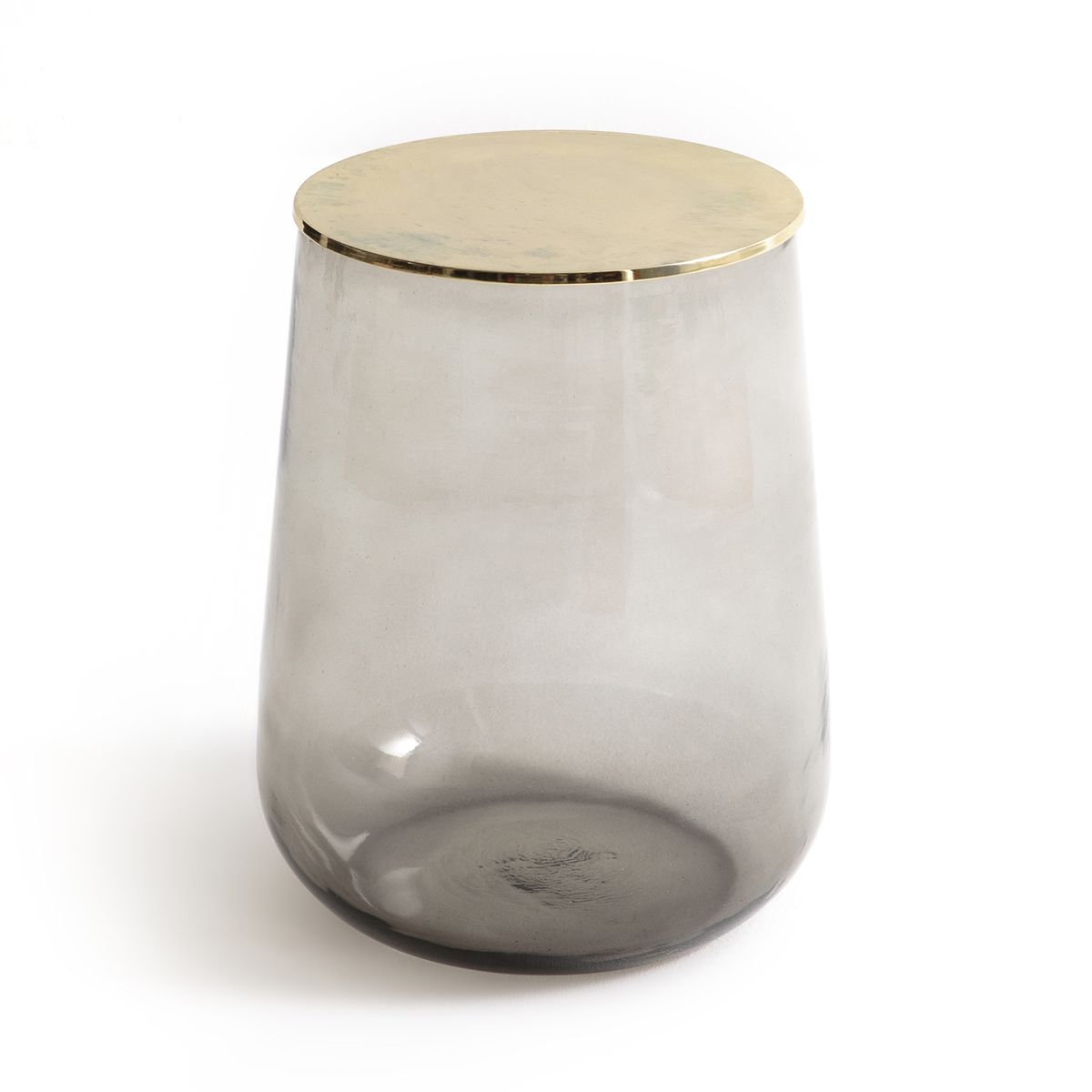 Le bout de canapé Conopée. Léger et aérien, il apportera une touche de couleur au salon. Il se positionne au choix côté métal ou côté verre sur le dessus et peut aussi servir de chevet. Fabriquée artisanalement avec du verre soufflé à la bouche, chaque pièce est unique.