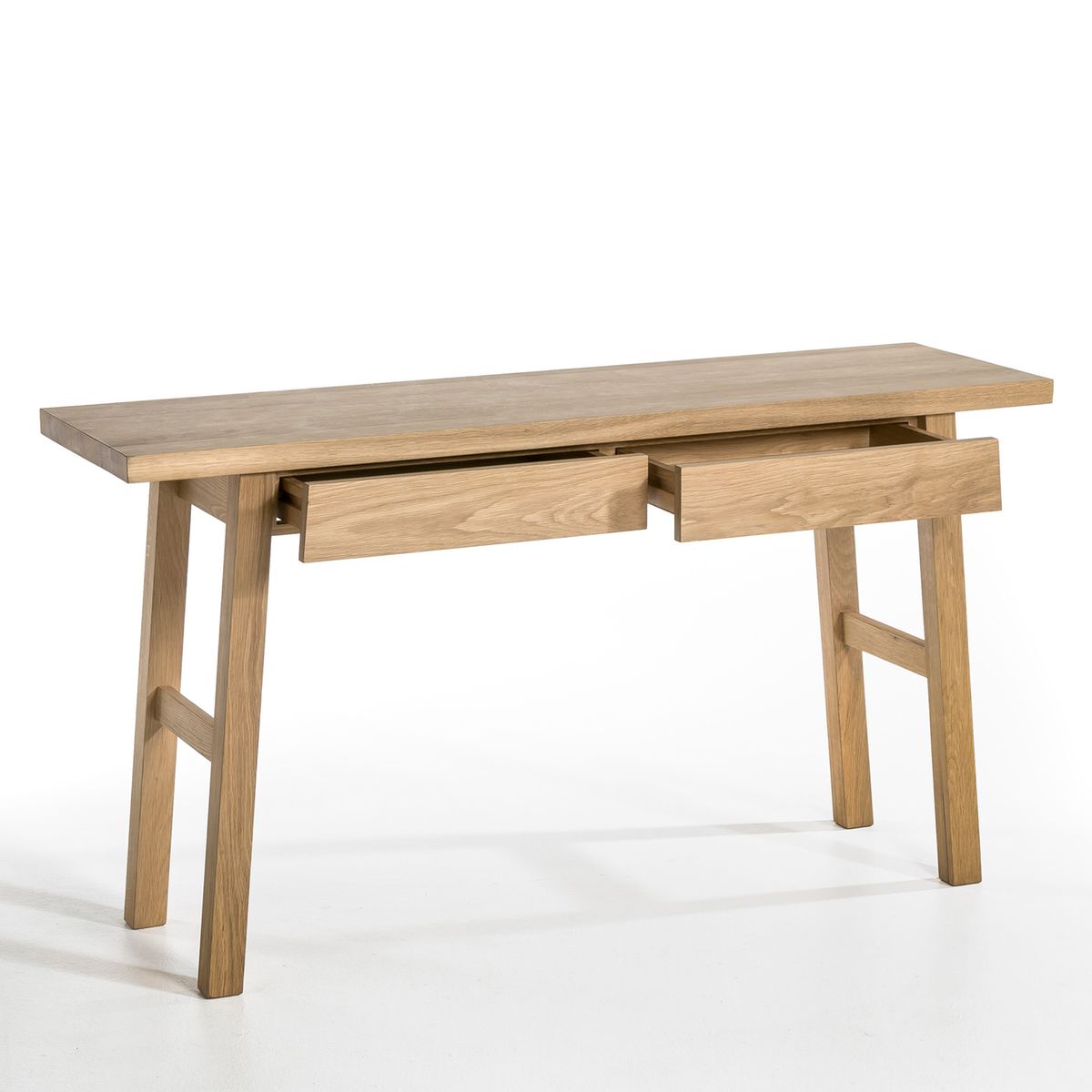 Le bureau Liu. Un plateau épais (4 cm) et une faible profondeur caractérisent ce bureau console, d’i