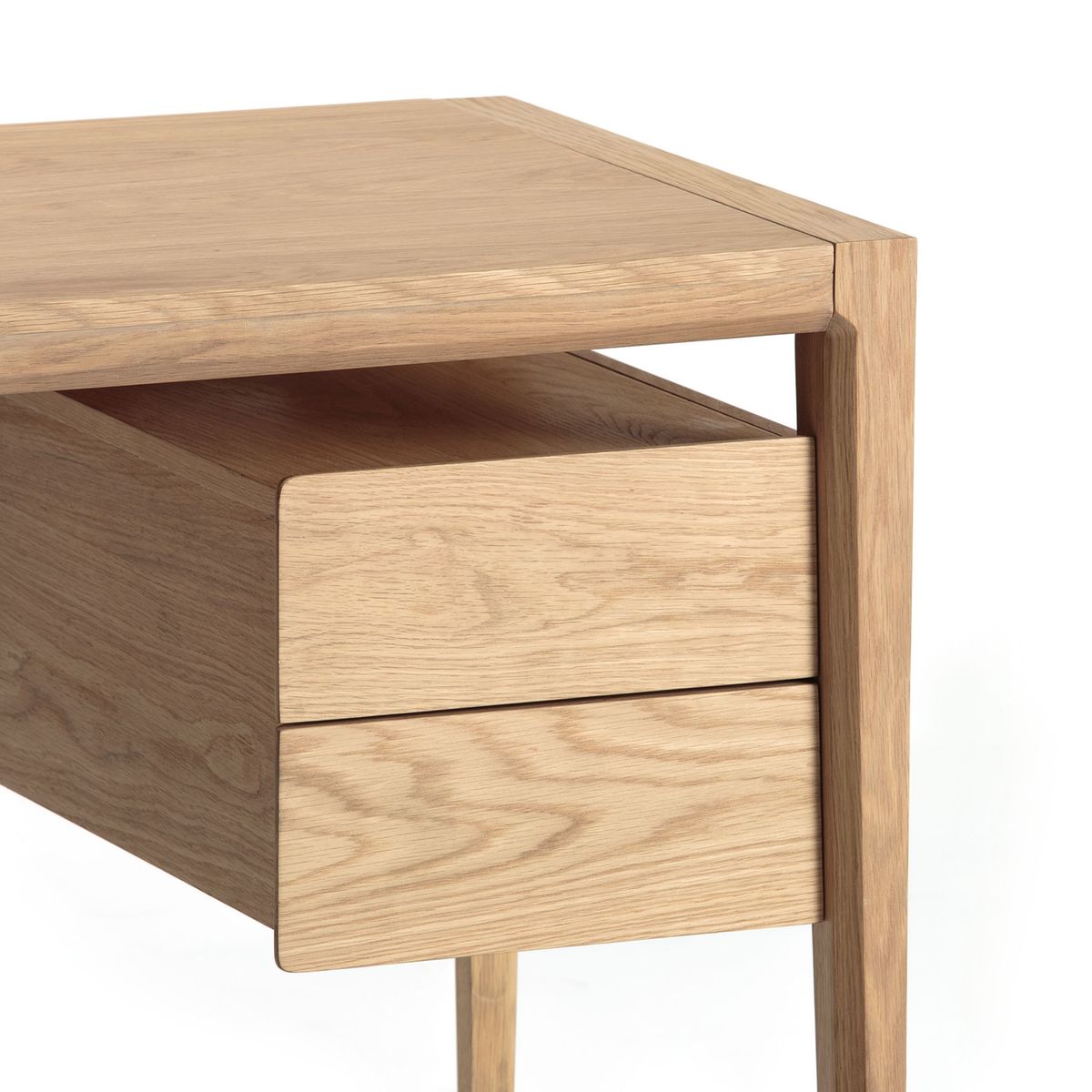 Ses 2 tiroirs comme suspendus procurent une sensation de légèreté. Affiné par le détail du chanfrein et par la sculpture délicate du piètement, le bureau Nizou nous renvoie au savoir-faire de l’artisan ébéniste.