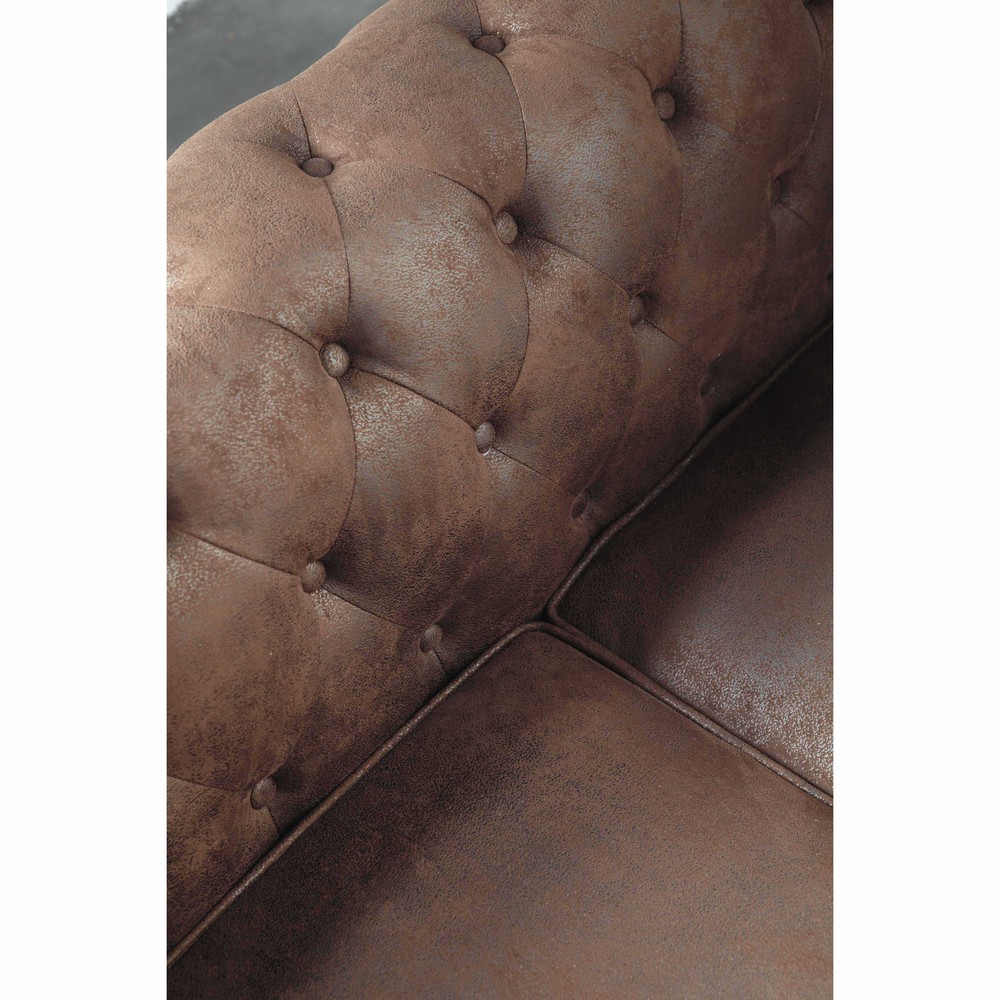 Toujours classique et élégant, le canapé capitonné 3 places en suédine marron CHESTERFIELD apportera