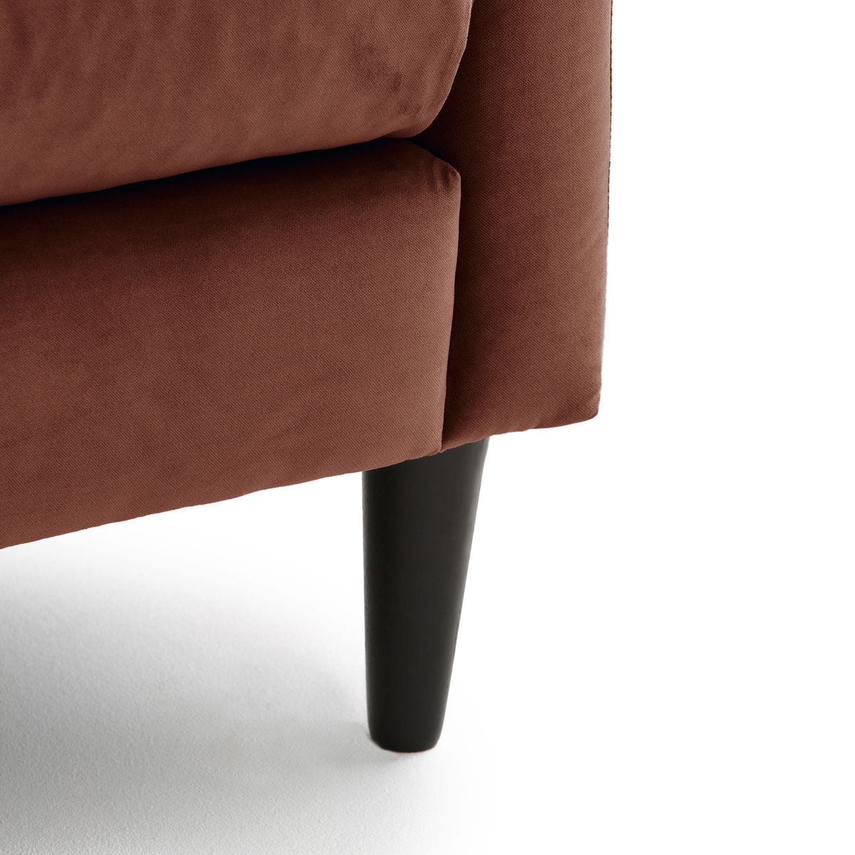 • Coussins d’assise garnis de mousse polyuréthane HR 35kg/m3 et d’une poche de fibres polyester, plumes et flocons pour un confort moelleux.