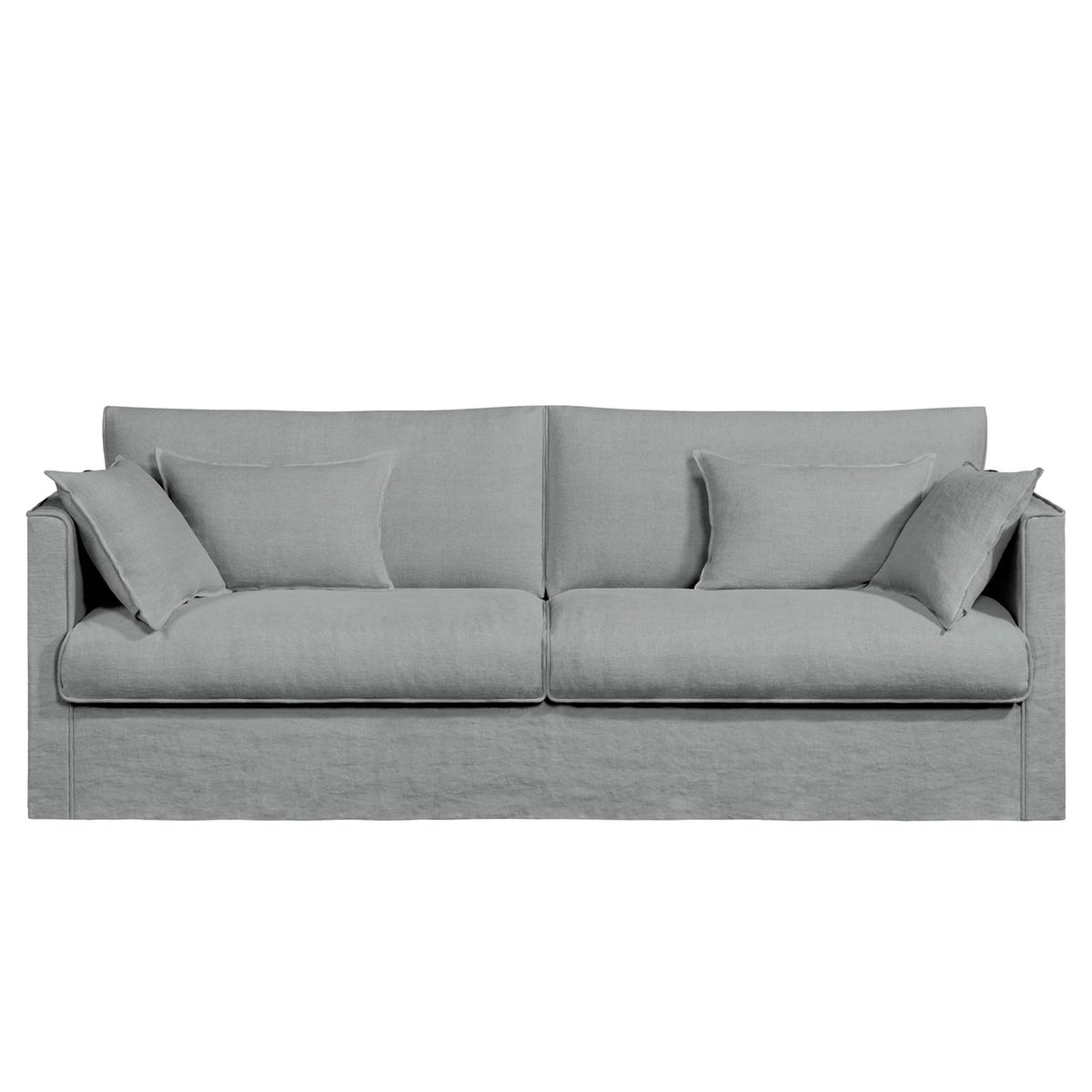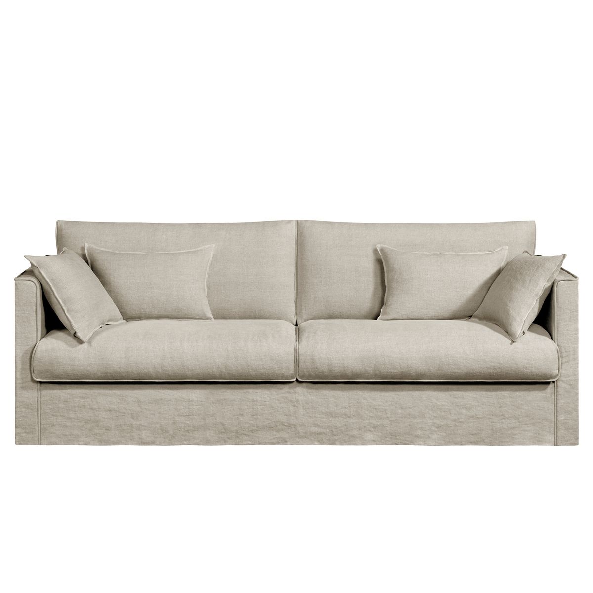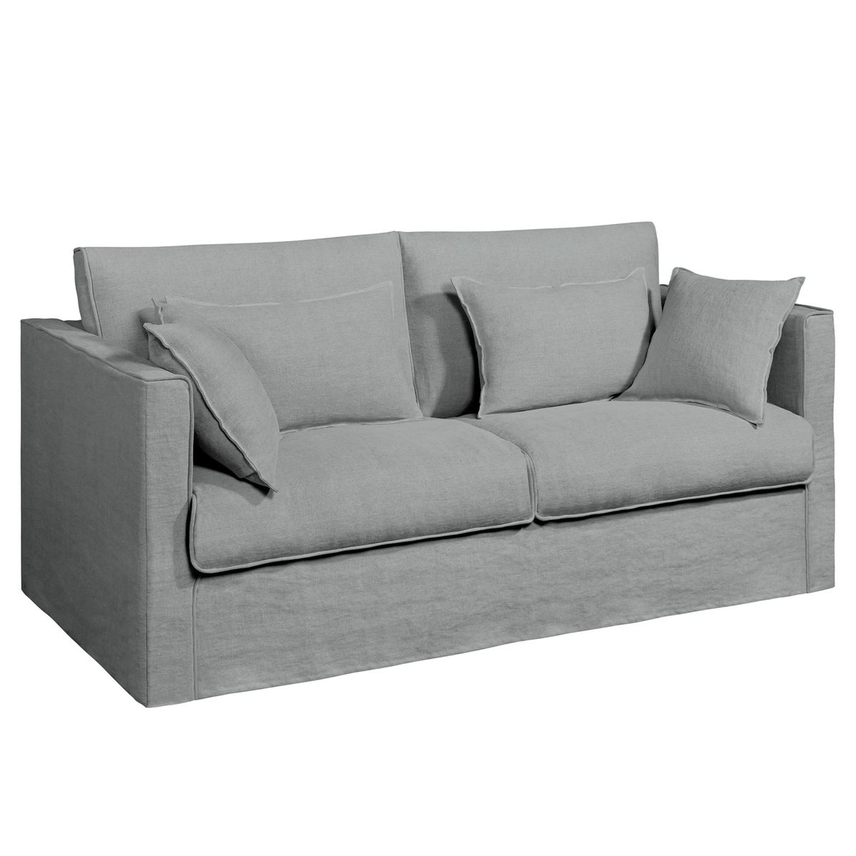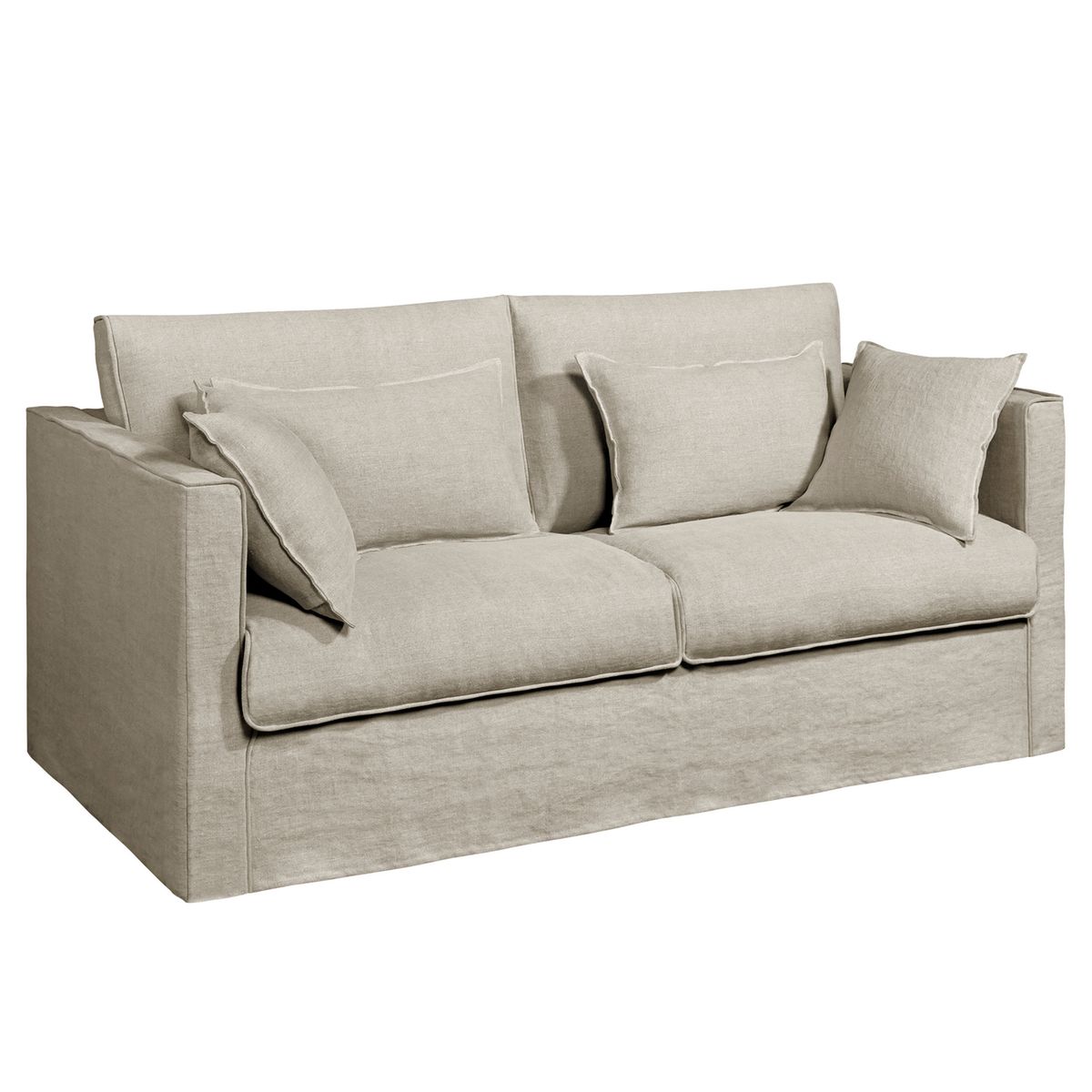 Le canapé fixe Camille toile lin épais stonewashed. Une belle finition passepoilée, ton sur ton, souligne les proportions parfaitement équilibrées de ce canapé à la fois classique et contemporain. Fabrication française.
