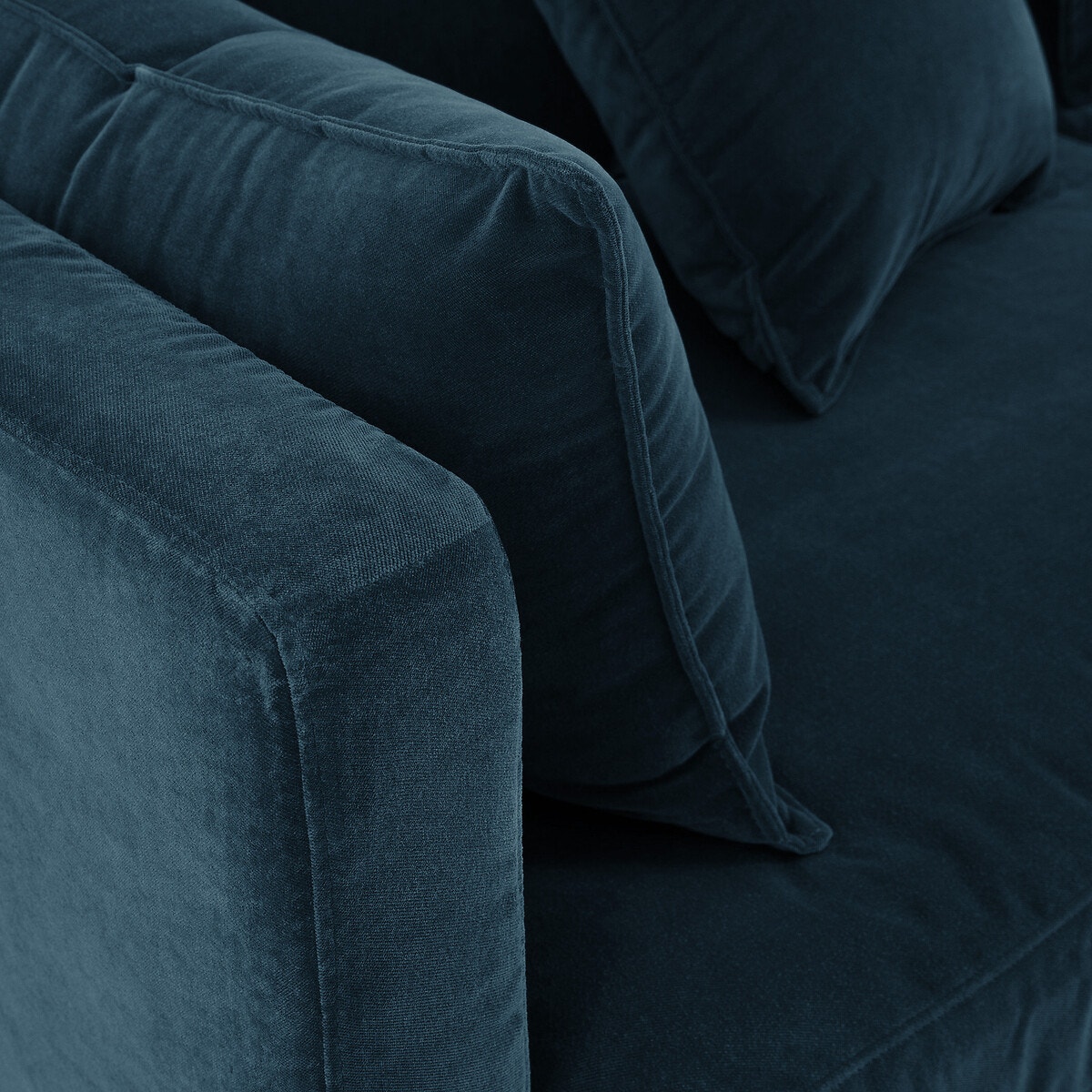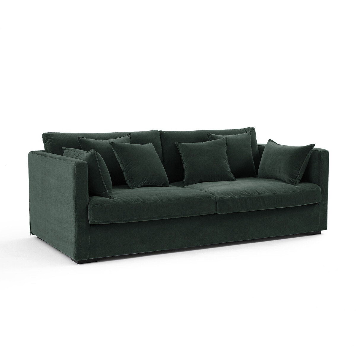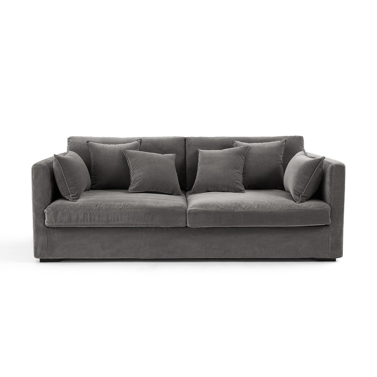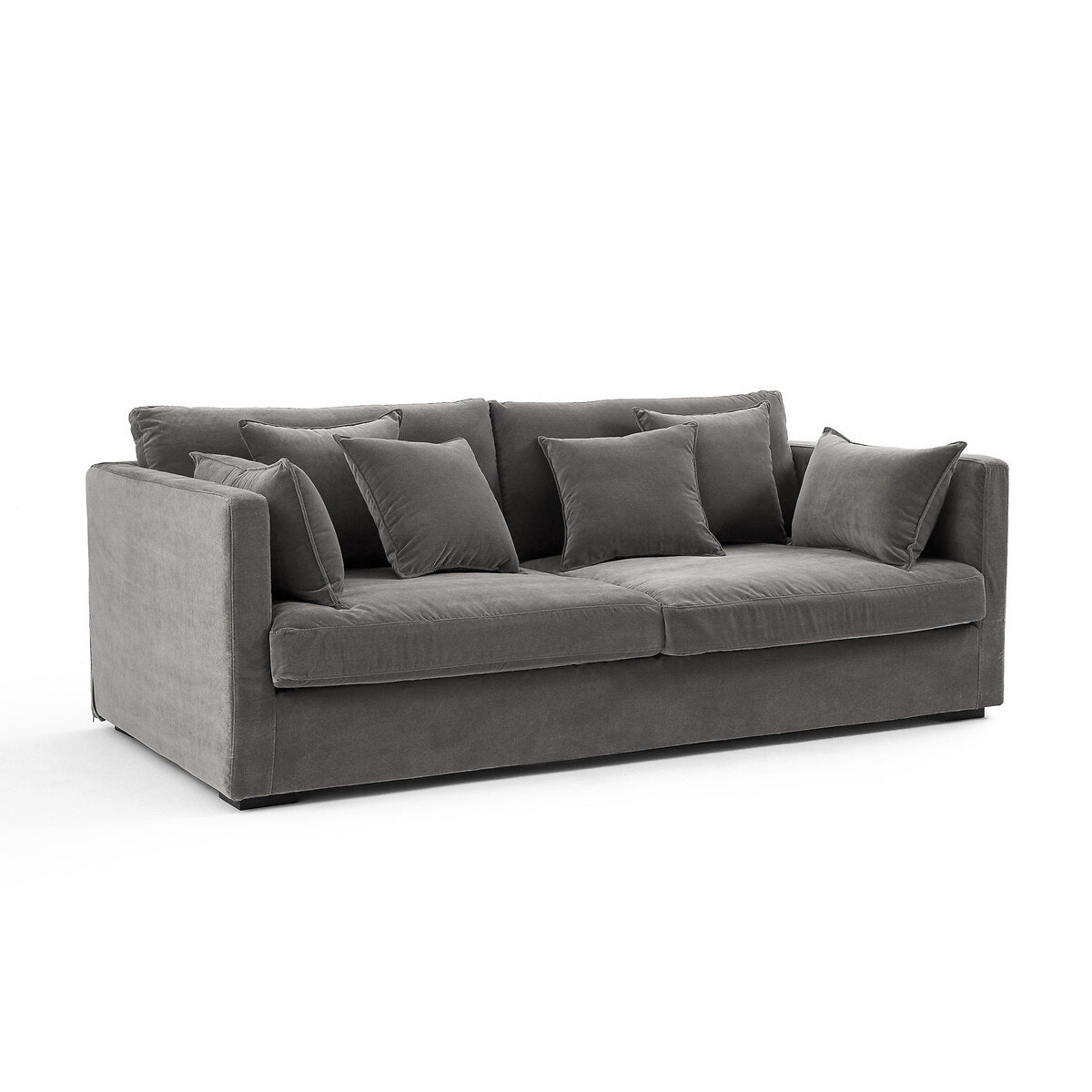 Canapé fixe 3/4 ou 5 places NÉO KINKAJOU, velours. Fabrication française. Une assise très profonde et une ligne contemporaine au confort particulièrement douillet.