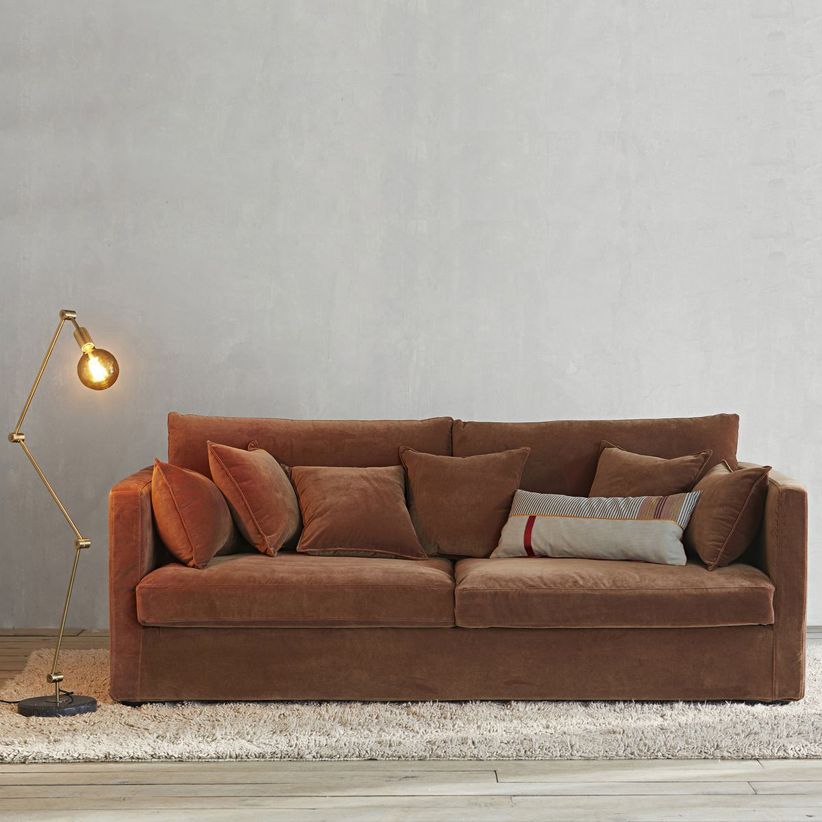 Canapé fixe 3/4 ou 5 places NÉO KINKAJOU, velours. Fabrication française. Une assise très profonde e