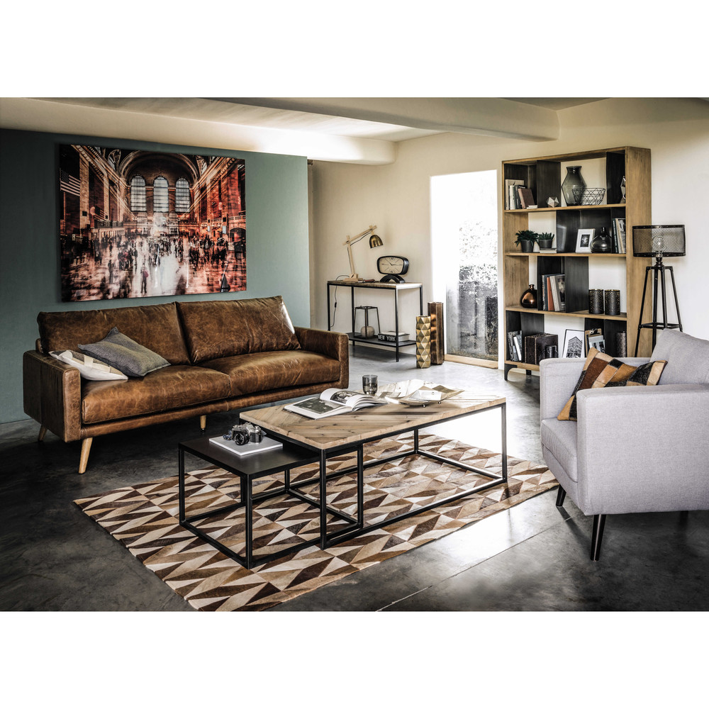 Ce produit est composé à partir de bois récupéré. Ce système permet d’offrir une deuxième vie à la matière première. Cet ensemble de tables gigognes CHEVRON trouvera facilement sa place dans votre univers contemporain. La plus grande est recouverte d’un plateau en pin recyclé et la plus petite est entièrement en métal noir. Pratique, vous pouvez les disposer côte à côte ou bien séparément. Le détail déco : l’effet graphique créé par la disposition des lattes de bois. Vous aimerez : les tables basses qui se rangent l’une sous l’autre pour faire gagner de la place au salon.
