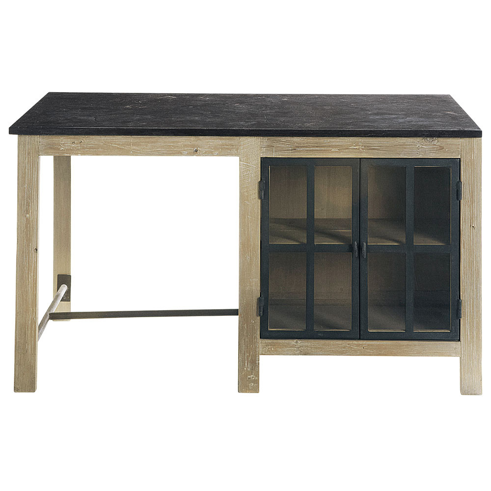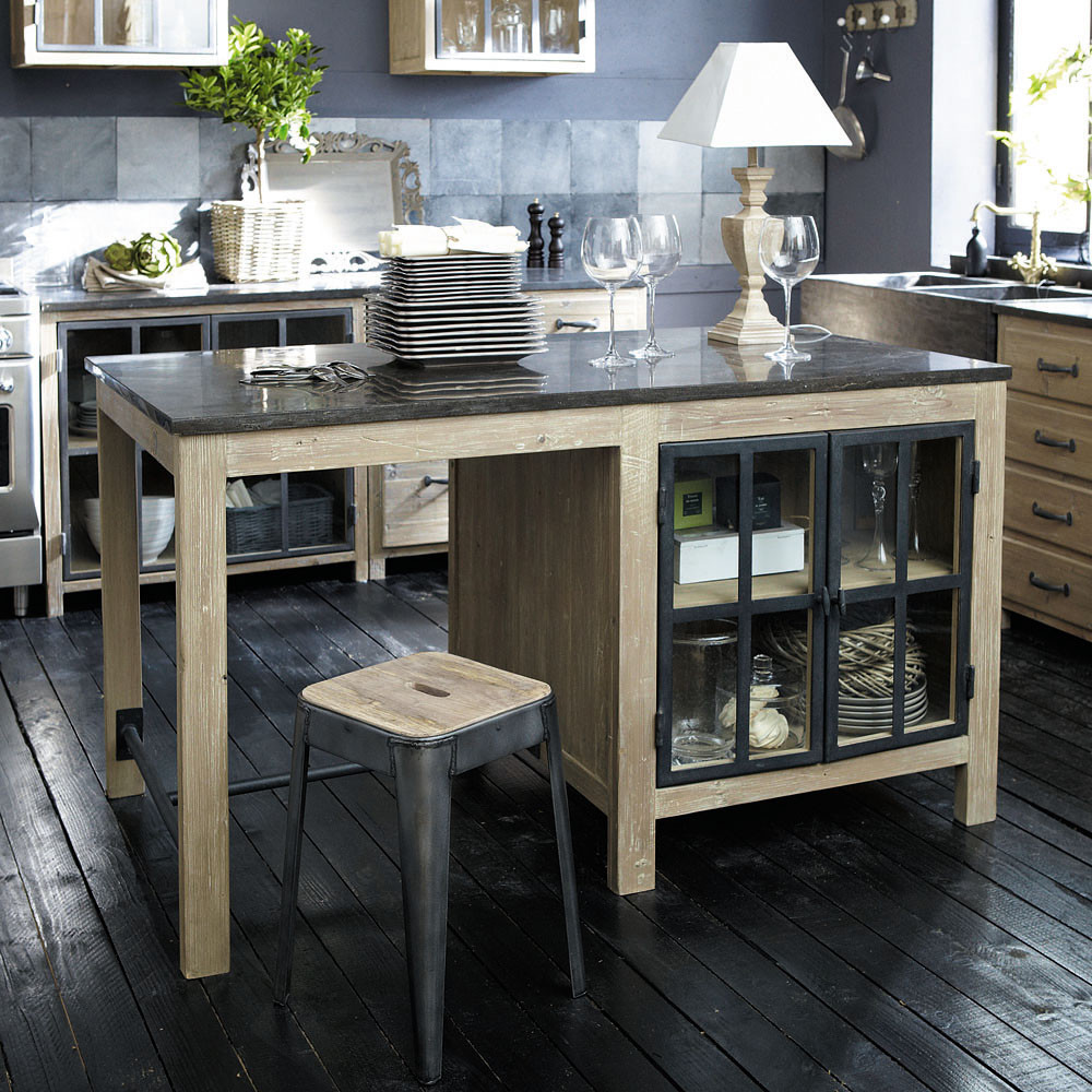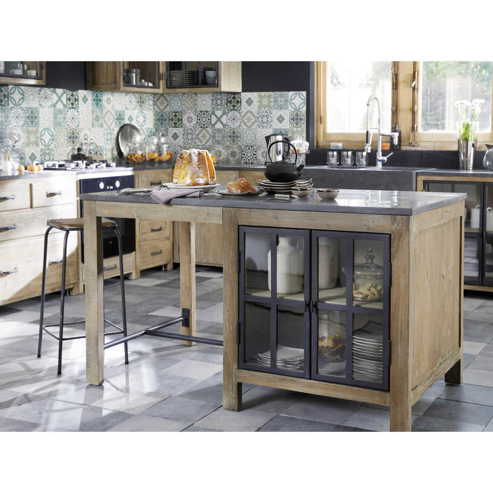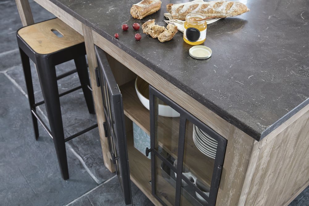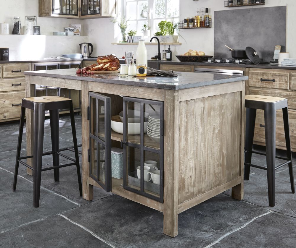 Pour créer une ambiance chaleureuse et conviviale dans votre espace cuisine, découvrez l’îlot central COPENHAGUE. Réalisé en bois de pin recyclé, ce meuble de cuisine offre un généreux plan de travail en pierre bleue pour toutes vos créations culinaires. Composé d’un espace convivial que l’on peut accompagner de chaises hautes, cet îlot central de cuisine cache également des rangements avec 2 portes vitrées d’un côté et 2 portes pleines de l’autre.