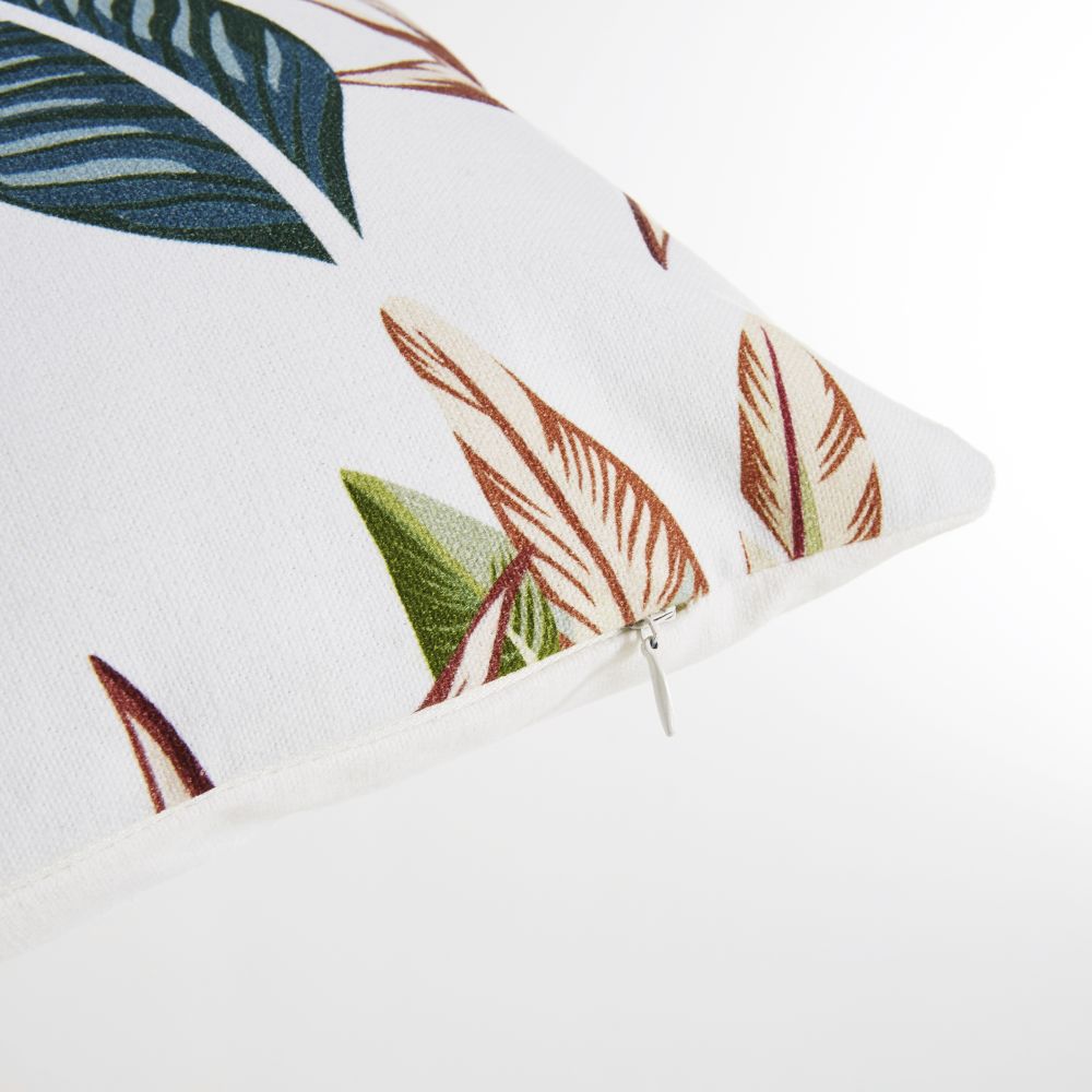 Comme une évidence, le coussin en coton écru imprimé feuilles multicolores 30×50 SPELLO insufflera u