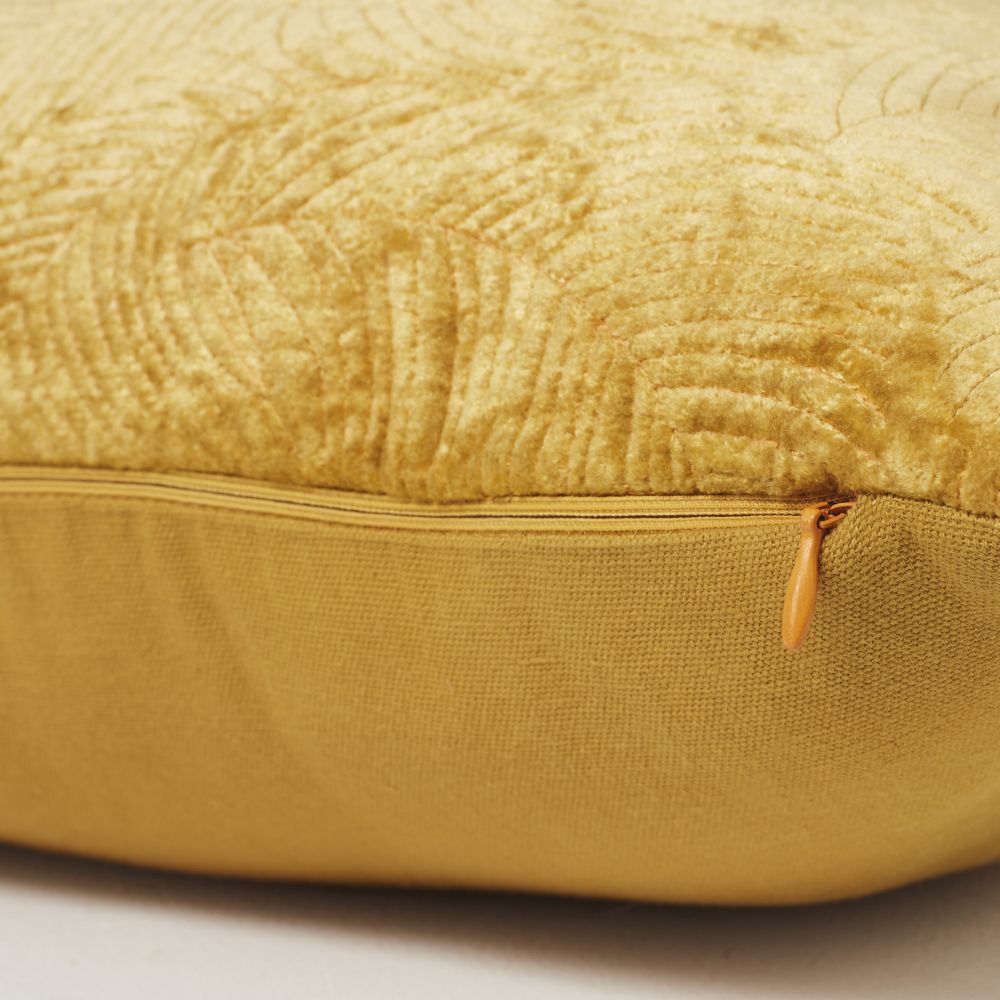 Il ne fait aucun doute : le coussin en velours piquรฉ jaune moutarde JOSETTE nous sรฉduit par sa douce