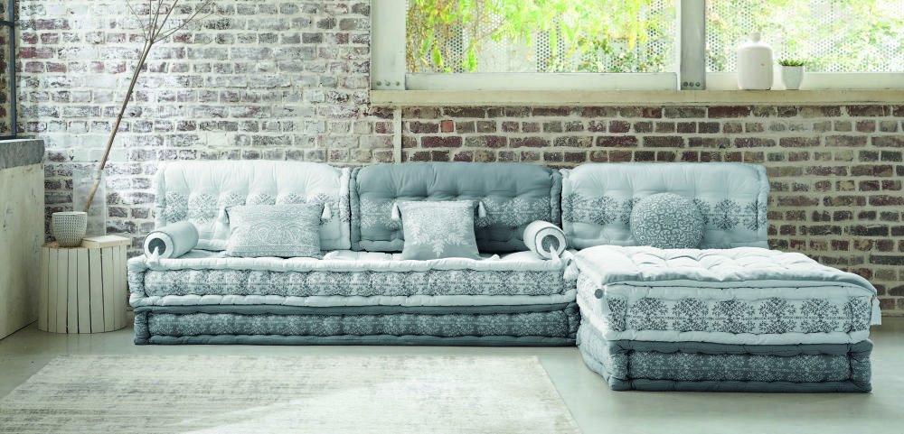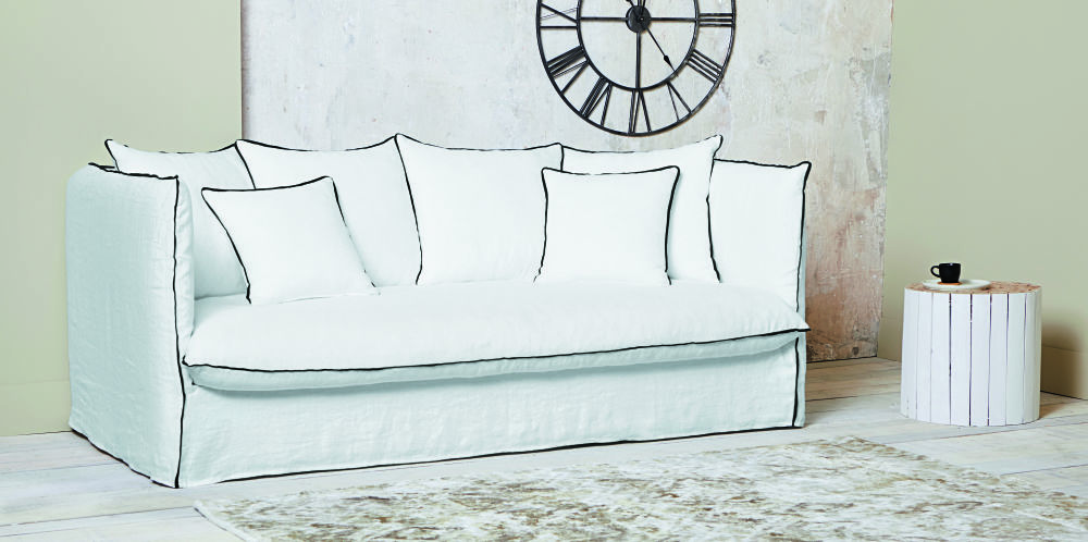 Assemblรฉ ร  partir de branches d’eucalyptus peintes, le bout de canapรฉ DIDDA de style nordique apport