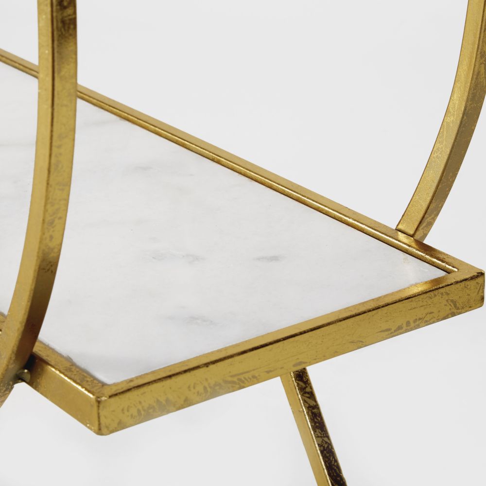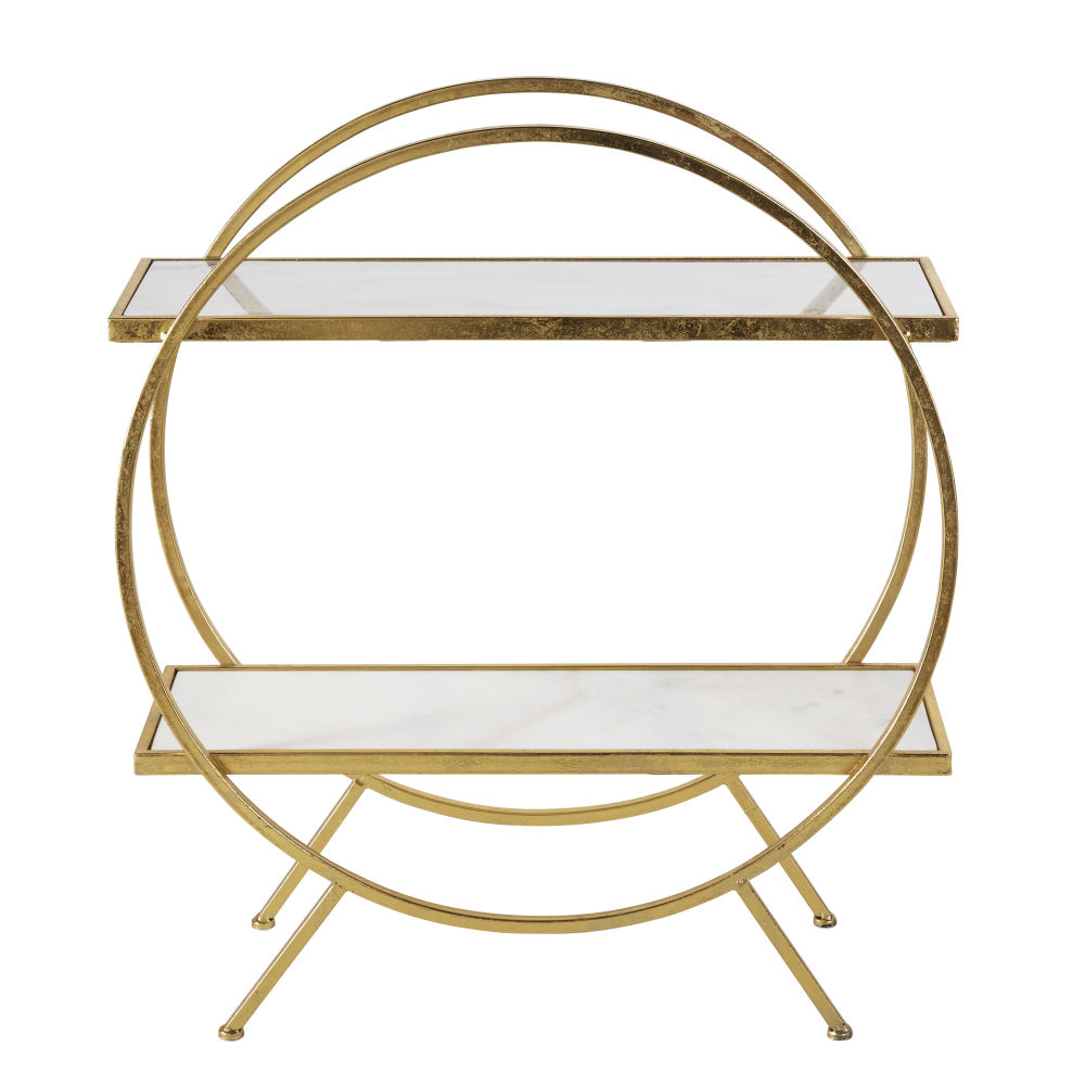 Succombez ร l’รฉlรฉgance de l’รฉtagรจre en mรฉtal dorรฉ et marbre blanc ELLIS. Graphique et sophistiquรฉe,