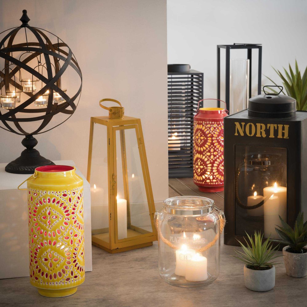 ร la fois objet dรฉcoratif et source lumineuse, la lanterne en mรฉtal ELVA possรจde une structure ajour