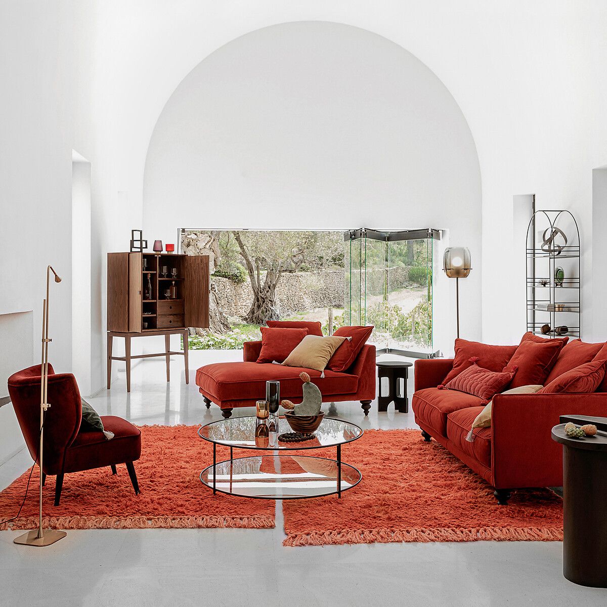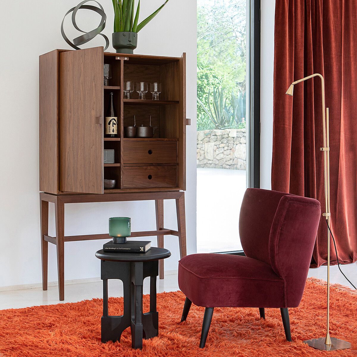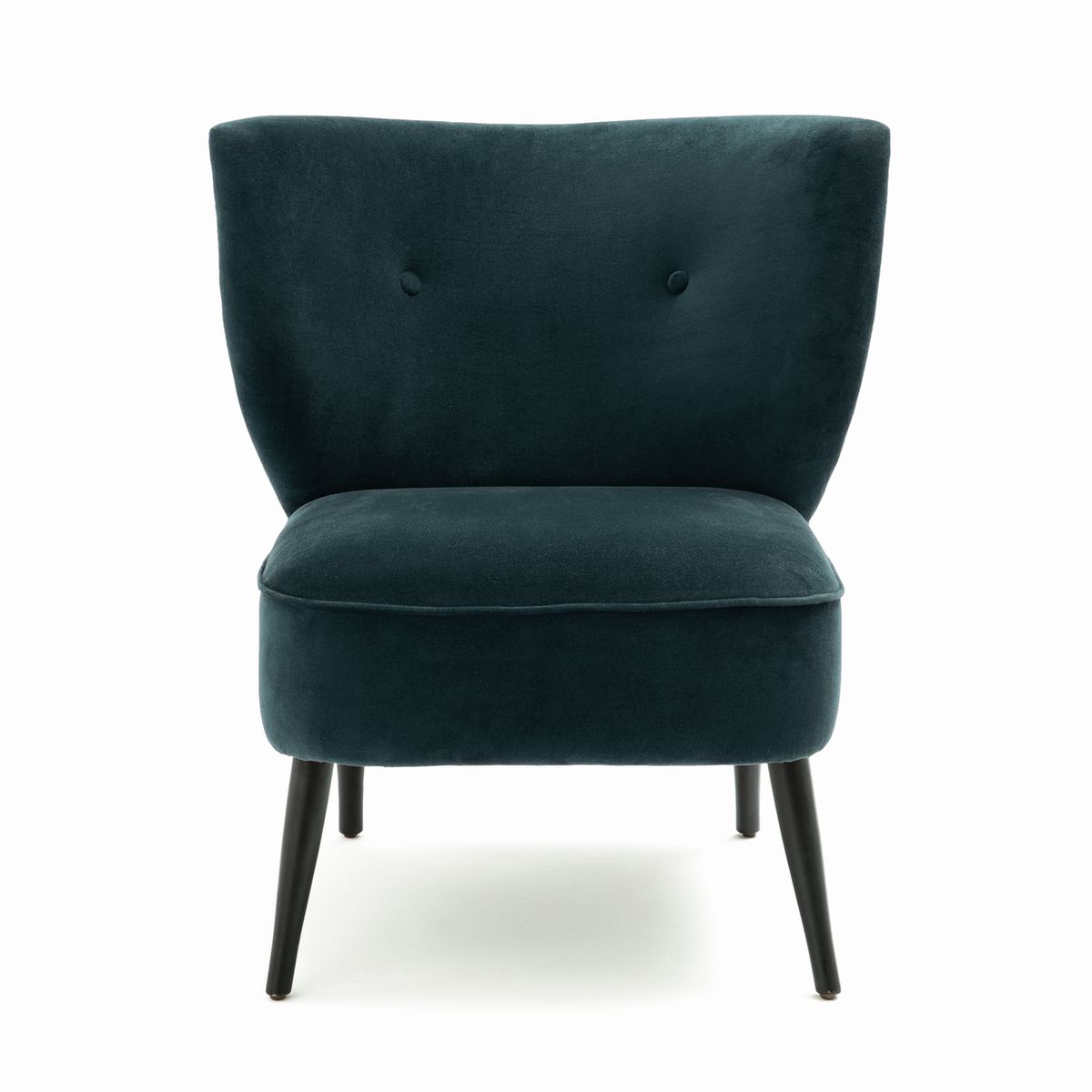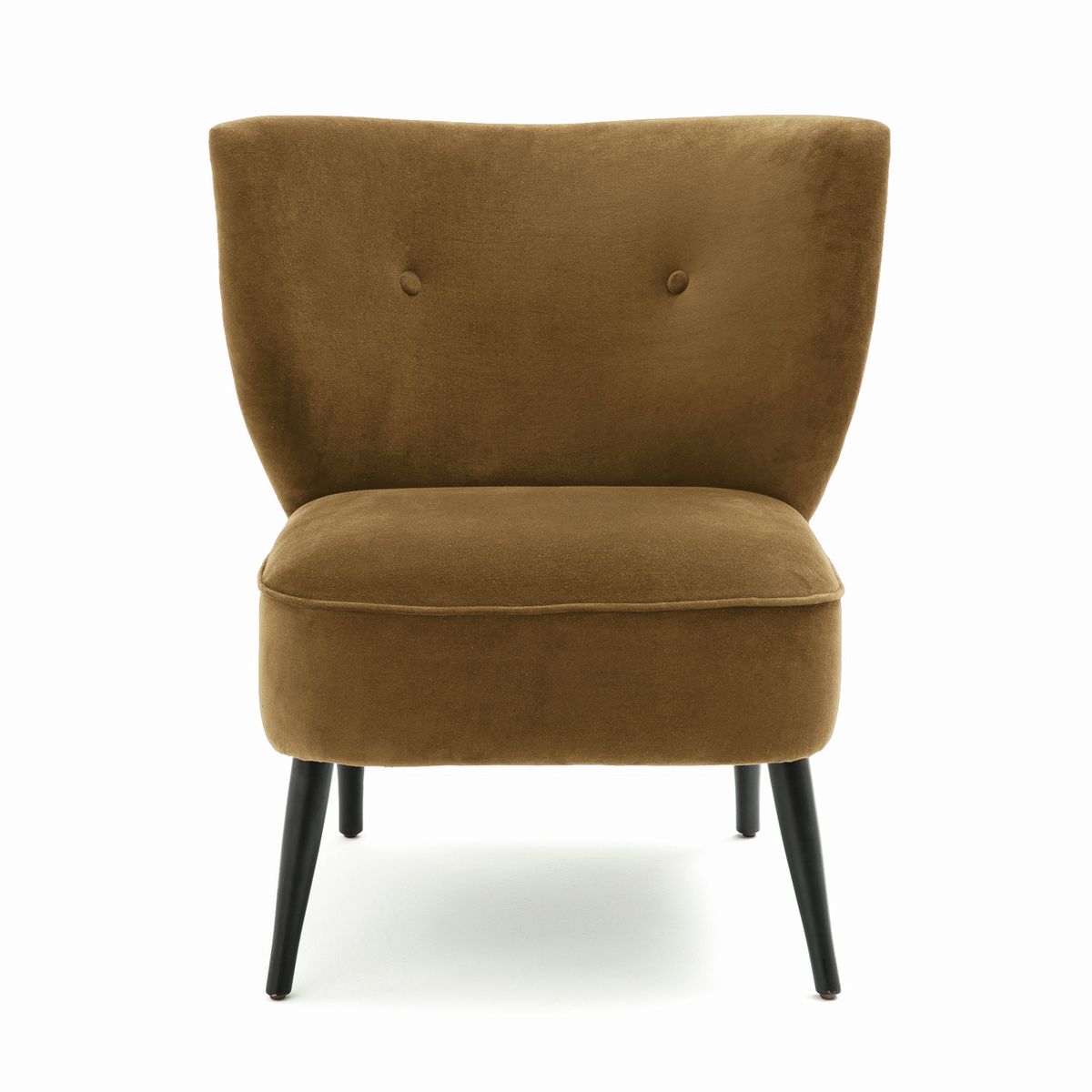 Le fauteuil Franck. Dossier galbรฉ et assise confortable, on aime l’esprit des annรฉes 50 de ce fauteuil habillรฉ de velours.