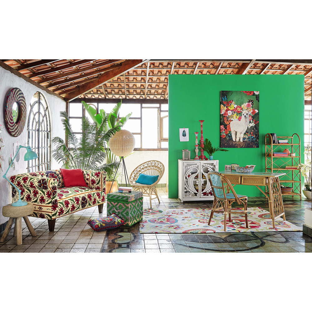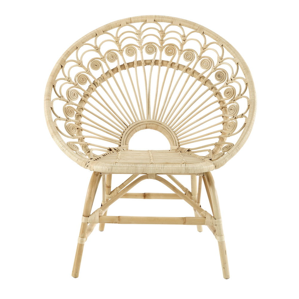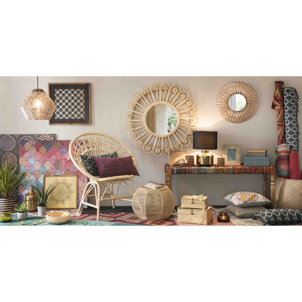 Voici la traduction en franรงais : Dans une dรฉco vintage ou exotique, ce fauteuil en rotin crรฉera u