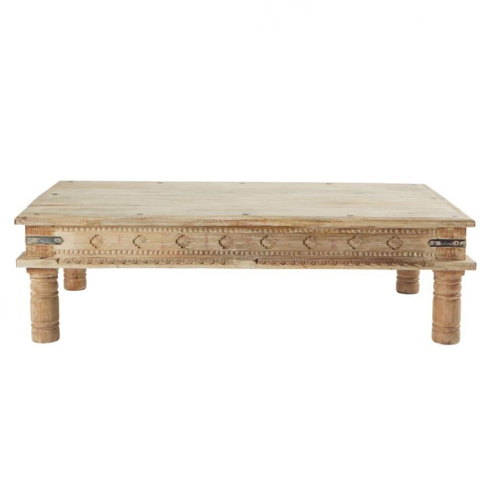 Voyagez vers des contrรฉes lointaines avec la table basse indienne en manguier massif GANDHI ! Lรฉgรจre