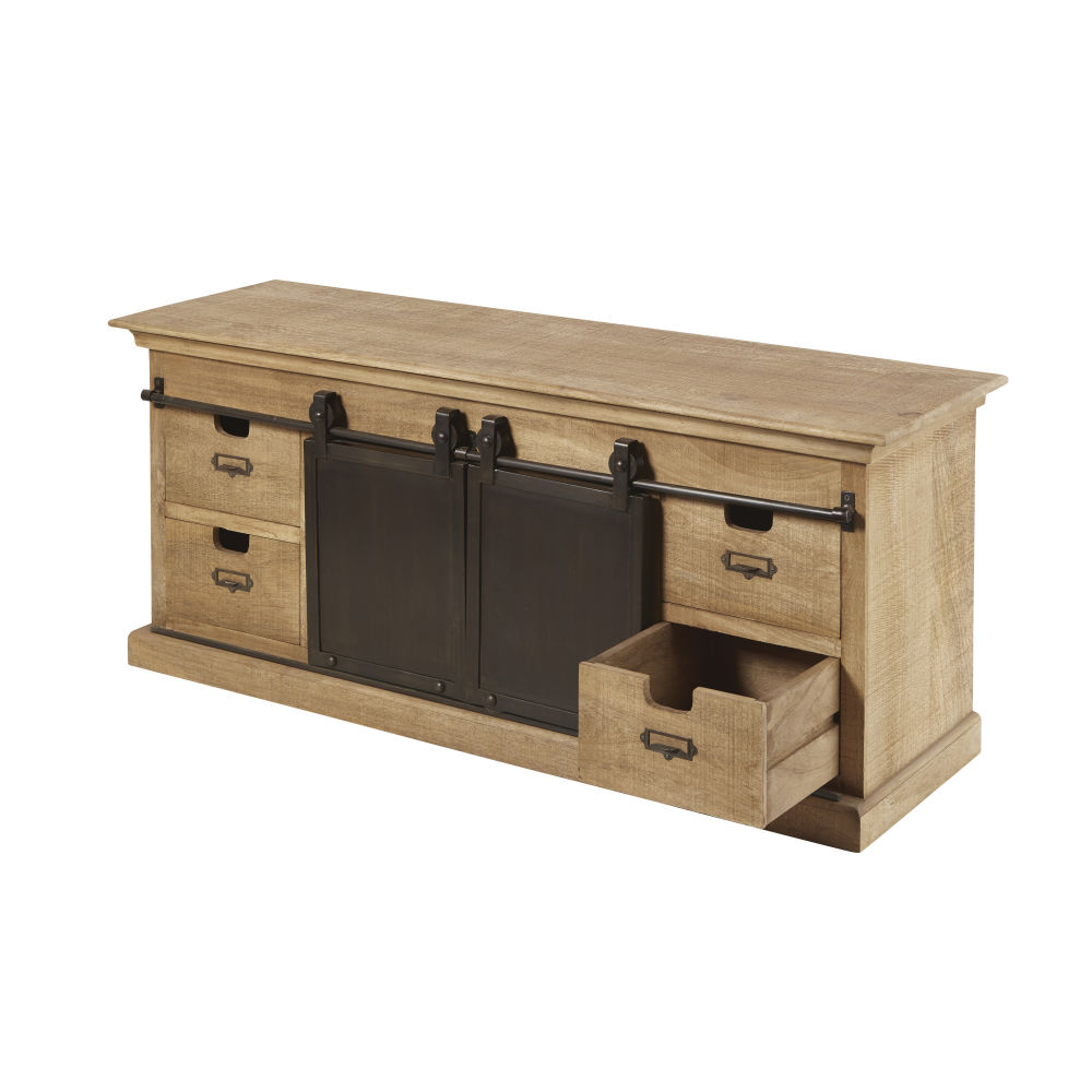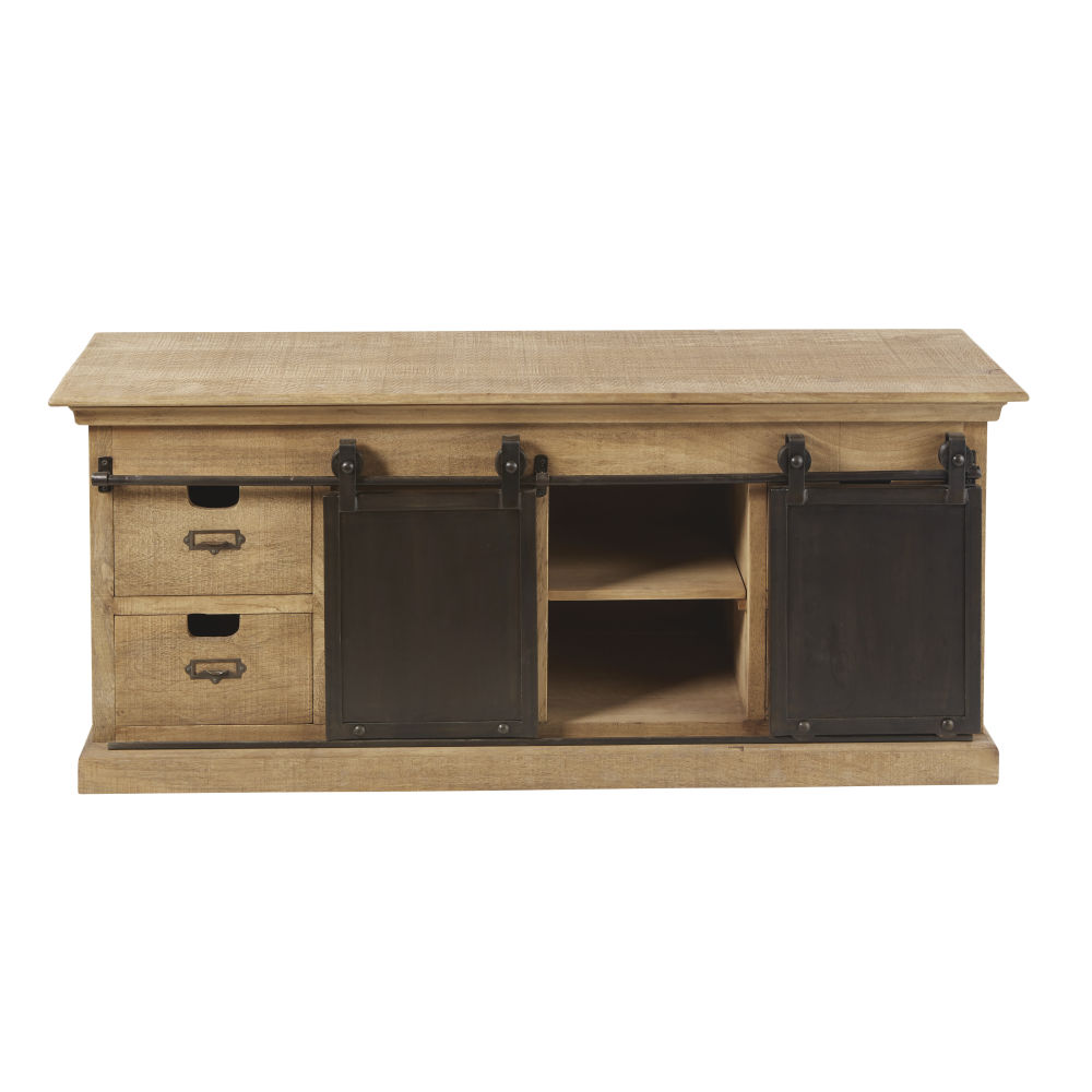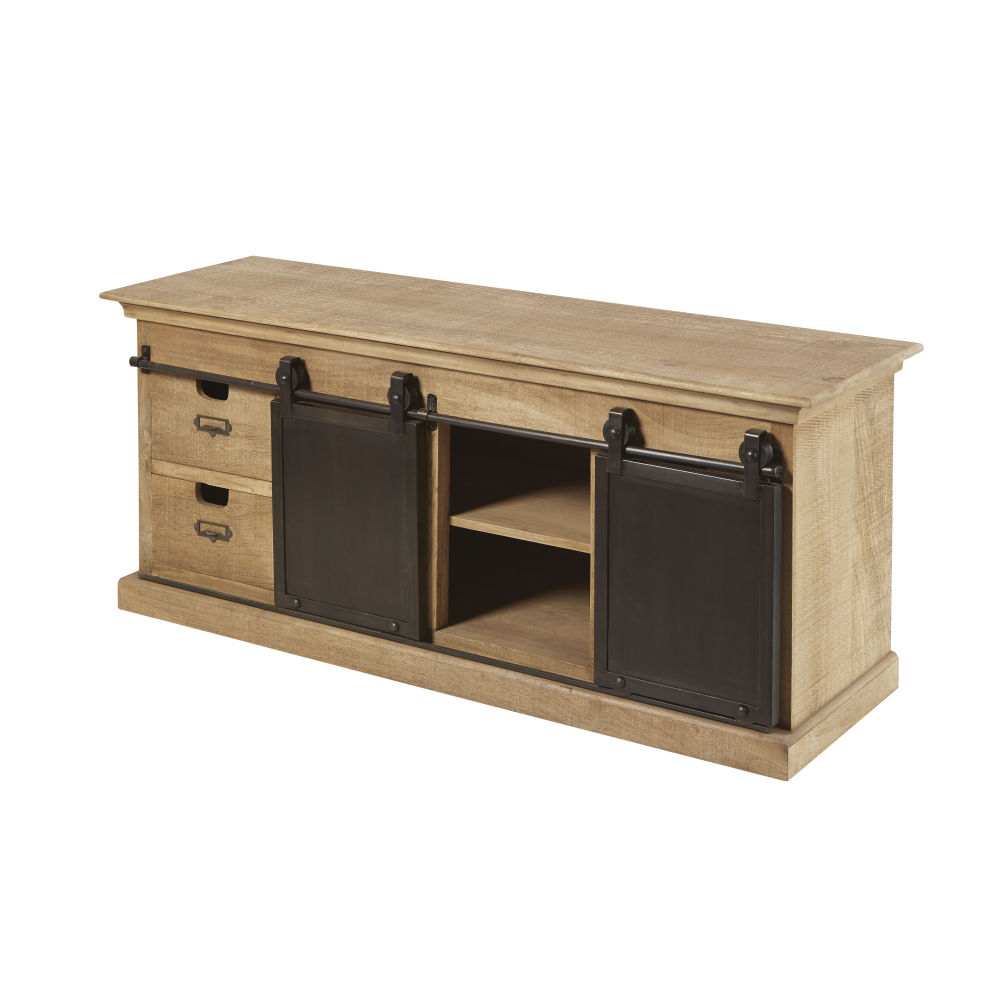 Besoin de plus de rangements dans votre salon ? Nous avons la solution : le meuble TV 2 portes 4 tiroirs en manguier massif GERMAIN. Pratique, vous pourrez y organiser tout votre matรฉriel high-tech mais pas seulement ! Livres, DVD et autres accessoires pourront y รชtre rangรฉs et protรฉgรฉs de la poussiรจre. Avec ce meuble TV au style industriel mรชlant bois et mรฉtal, les yeux de vos convives ne seront pas rivรฉs que sur l’รฉcran de votre tรฉlรฉvision !