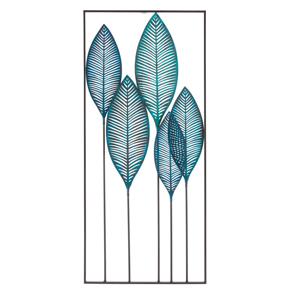 Avec la déco murale feuillage en métal bleu 60×136 GREEN ADDICT, l’été sera là toute l’année ! Entou