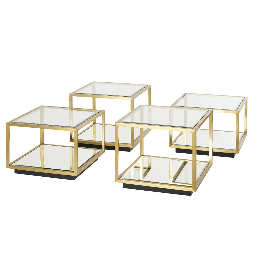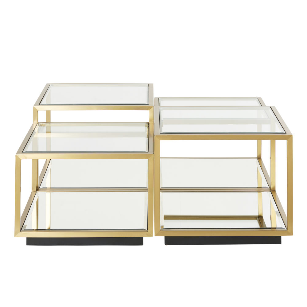 Ne faisant aucun jaloux, les tables gigognes en verre trempรฉ et mรฉtal dorรฉ GREENWICH donneront ร vot