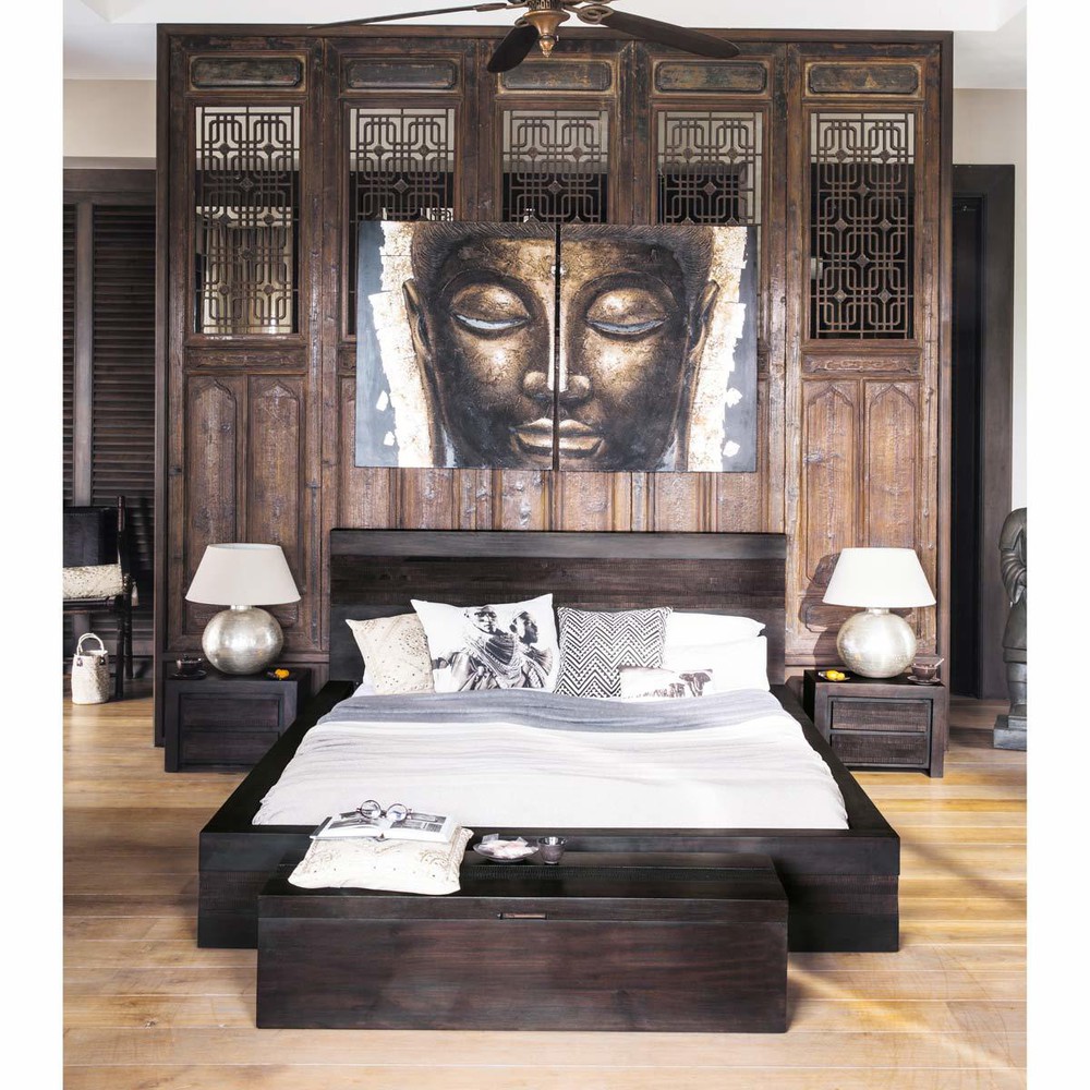 Envie de créer une ambiance paisible et chaleureuse dans votre chambre ? Découvrez le lit exotique 160×200 en manguier massif JAVA. Ce grand lit en bois massif teinté s’inspire des codes des grands hôtels asiatiques. Sa forme rigoureuse et géométrique pour ce lit 2 places créera une atmosphère raffinée. Avec des dimensions généreuses, ce lit de style exotique fera voyager votre esprit et votre intérieur.