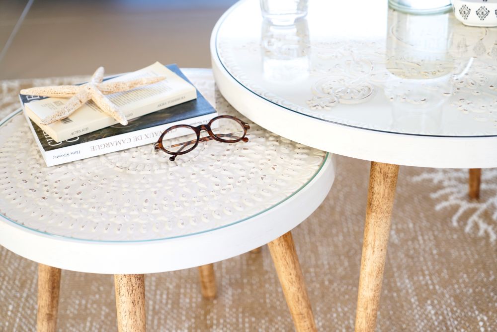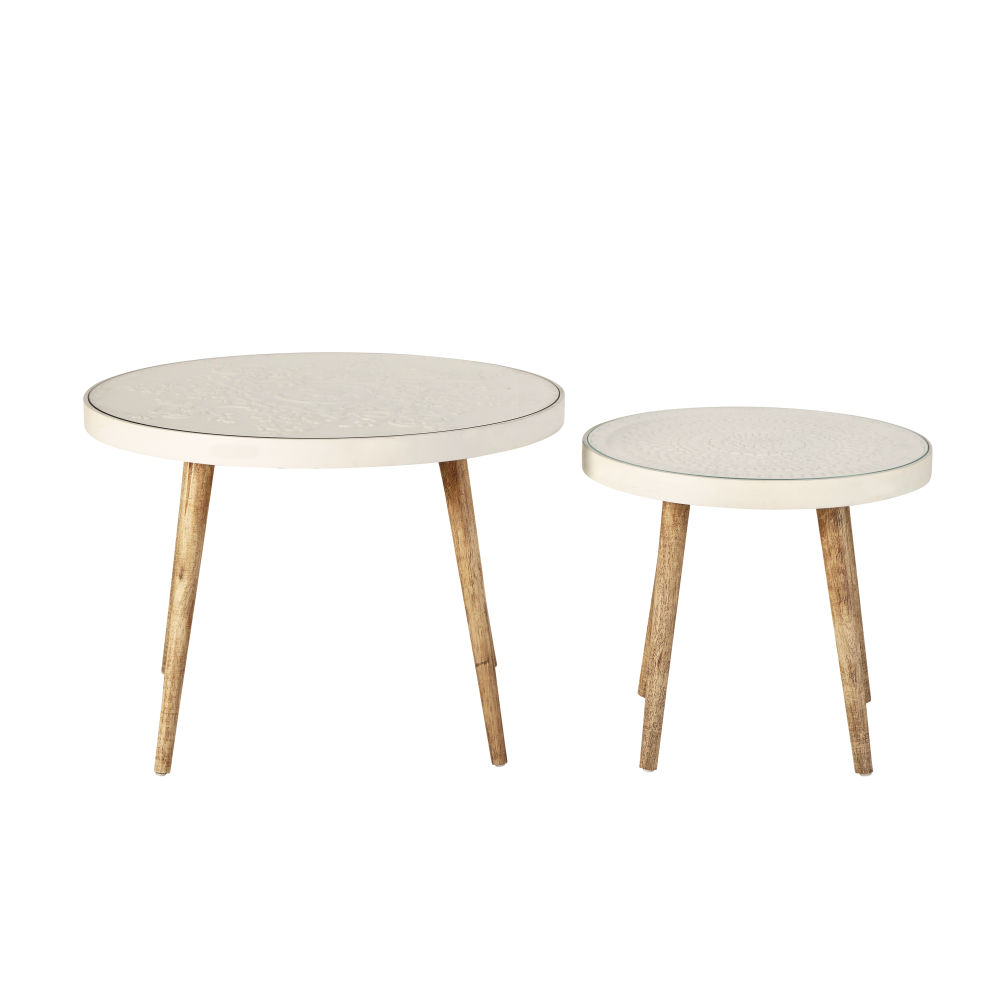 Les gravures sont ร la mode sur les tables gigognes avec motifs gravรฉs et verre KAYLA. Cet ensemble de hauteurs diffรฉrentes vous permettra de jouer avec les volumes dans votre intรฉrieur. Rรฉunies, au centre de votre espace dรฉtente, ou sรฉparรฉes, ce set de 2 tables sera du plus bel effet. Leurs pieds en hรฉvรฉa leur confรจrent une touche vintage tandis que les plateaux gravรฉs, protรฉgรฉs par des plaques en verre, รฉvoquent un petit cรดtรฉ classique chic. Prรชtes ร accueillir vos plantes, vos objets de dรฉcoration ou vos apรฉritifs, ces tables deviendront indispensables au quotidien. Quand l’utile se combine ร l’agrรฉable, on ne peut que craquer !