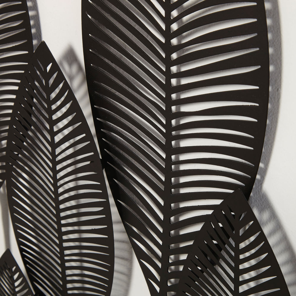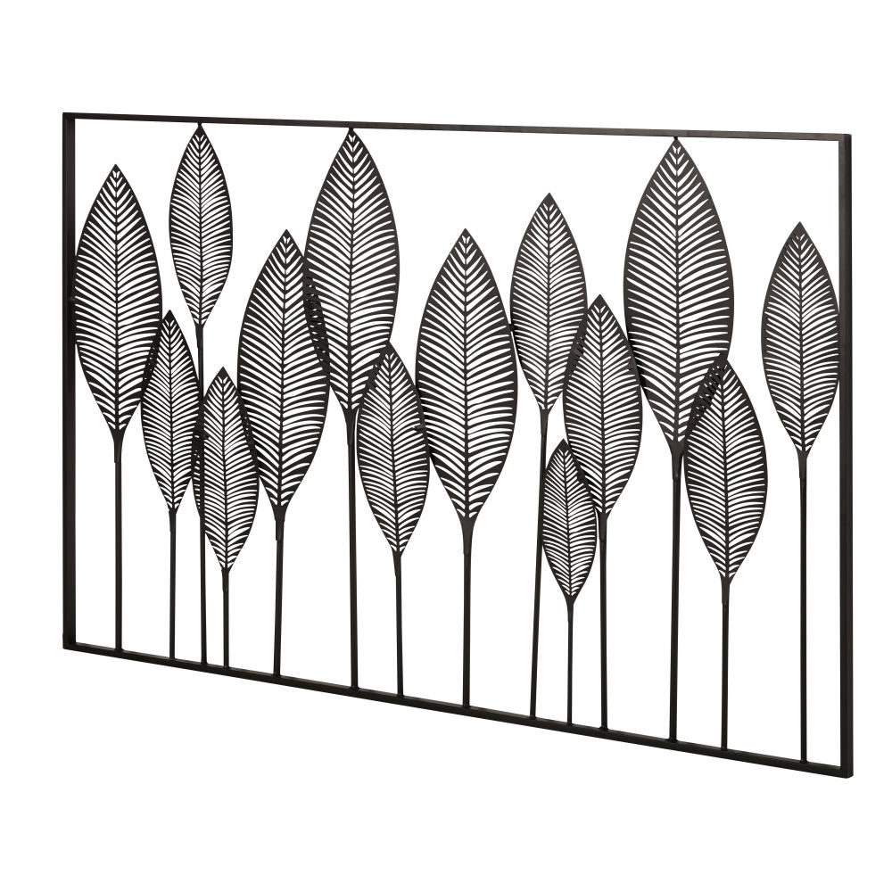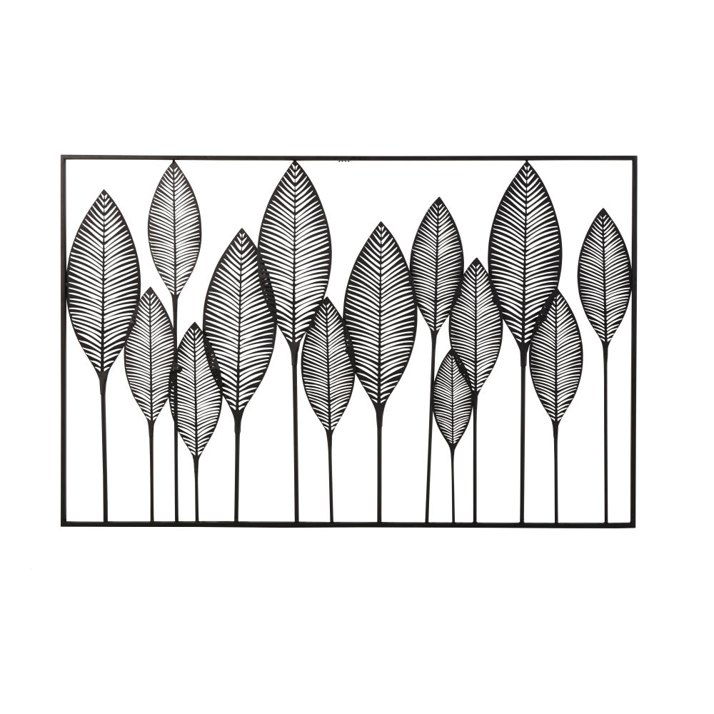 L’esprit graphique s’allie à la nature sur la décoration murale en métal noir ajouré 125×82 LAGOS. L