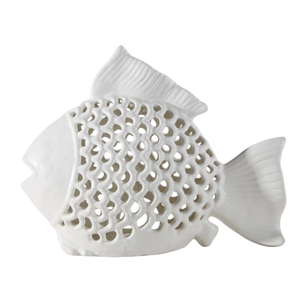 Pour les amateurs d’esprit bord de mer, les passionnés de nature, et les férus de souvenirs tout simplement, la lanterne poisson en céramique blanche LAGOS vous comblera. En plus de son corps en céramique opaline, elle accueillera une bougie laissant s’échapper une lumière paisible. La lanterne poisson trouvera sa place sur une étagère dans un salon aux notes épurées, dans une salle de bains reposante ou sur la table de la salle à manger de votre intérieur aux accents marins !