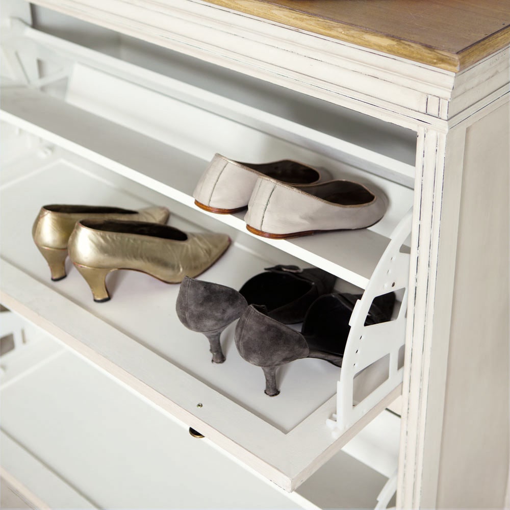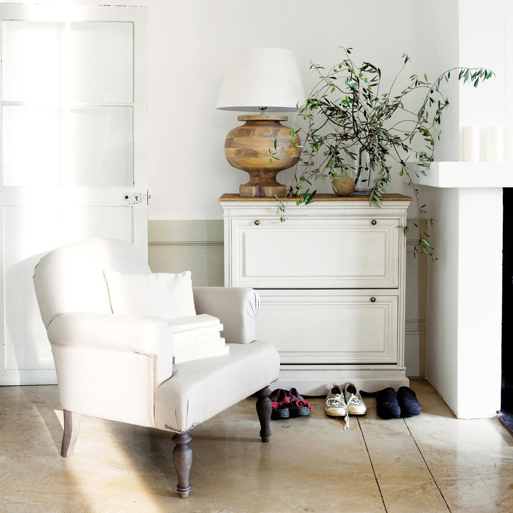 Le bois de ce meuble est certifié FSC. Ce label garantit que le bois provient d’une forêt gérée de manière responsable : vous aussi, participez à la préservation des forêts et de la biodiversité en choisissant ce produit. Un petit air de campagne flotte dans votre entrée avec le meuble à chaussures crème LEONTINE. Travaillé avec une patine au coloris doux, ce meuble de rangement saura se rendre indispensable. Avec sa structure en pin massif, ce meuble de style authentique vous offre deux beaux espaces pour ranger votre précieuse collection de chaussures. À l’entrée ou dans votre chambre, il s’intégrera gracieusement dans votre intérieur !