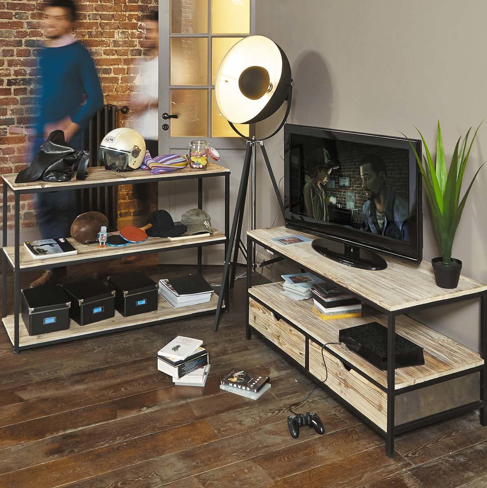 Le bois de ce meuble est certifié FSC. Ce label garantit que le bois provient d’une forêt gérée de manière responsable : vous aussi, participez à la préservation des forêts et de la biodiversité en choisissant ce produit. Authentique et discrète, la console en sapin massif et métal noir LONG ISLAND fait entrer les matériaux bruts dans les intérieurs contemporains. Composée de trois plateaux en bois légèrement blanchi, cette console industrielle au charme brut permettra d’habiller un espace un peu vide tout en mettant en valeur vos objets déco favoris : bougies, plantes, statuettes… À vous de voir !