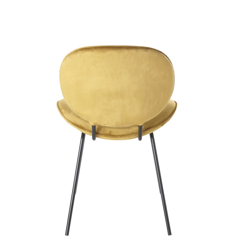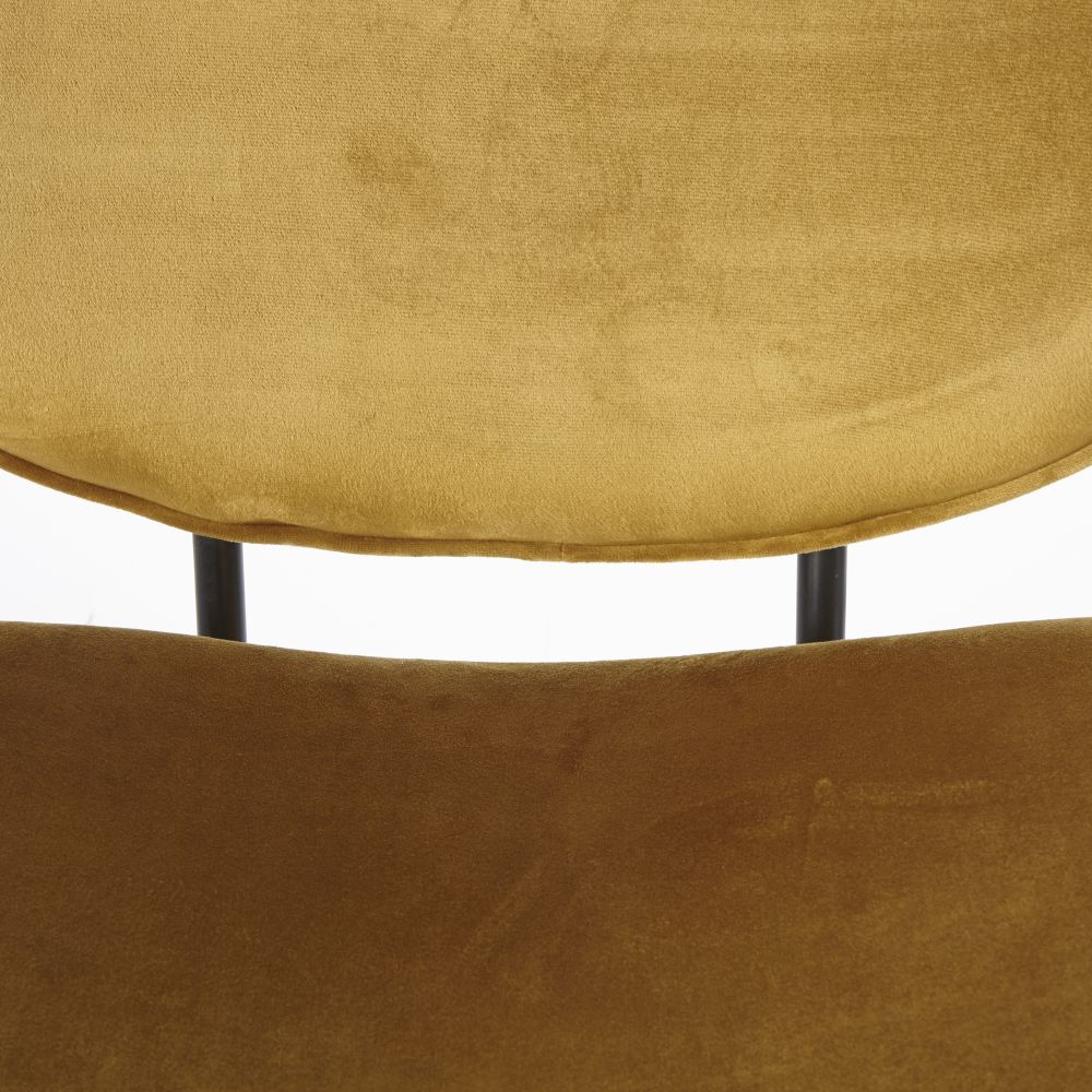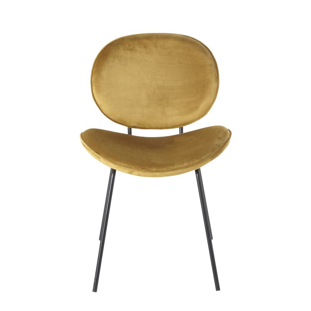 Avec son design voluptueux et ses courbes gracieuses, la chaise en velours ocre et mรฉtal noir LUNA s