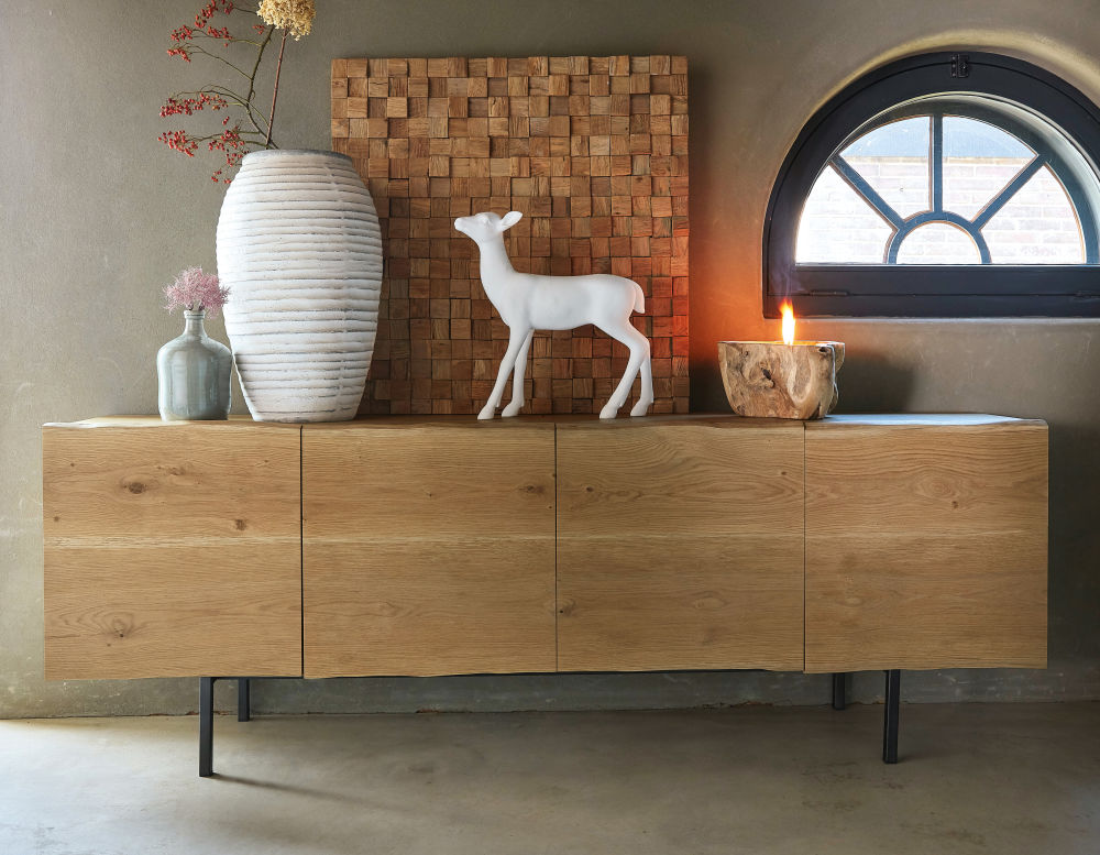 Le buffet enfilade vintage 4 portes en chรชne massif MAGNUS รฉtablira le lien entre le salon, la salle ร manger et la cuisine. Avec son style contemporain et son esprit nordique, il s’imposera en maรฎtre et rendra encore plus chaleureux votre cocon. Grรขce ร ce meuble de rangement, dites adieu au dรฉsordre ! Ses 4 portes renferment 4 รฉtagรจres amovibles pour accueillir tout votre bric-ร -brac. Notre conseil : profitez du long plateau pour ajouter une jolie lampe et quelques objets dรฉco.