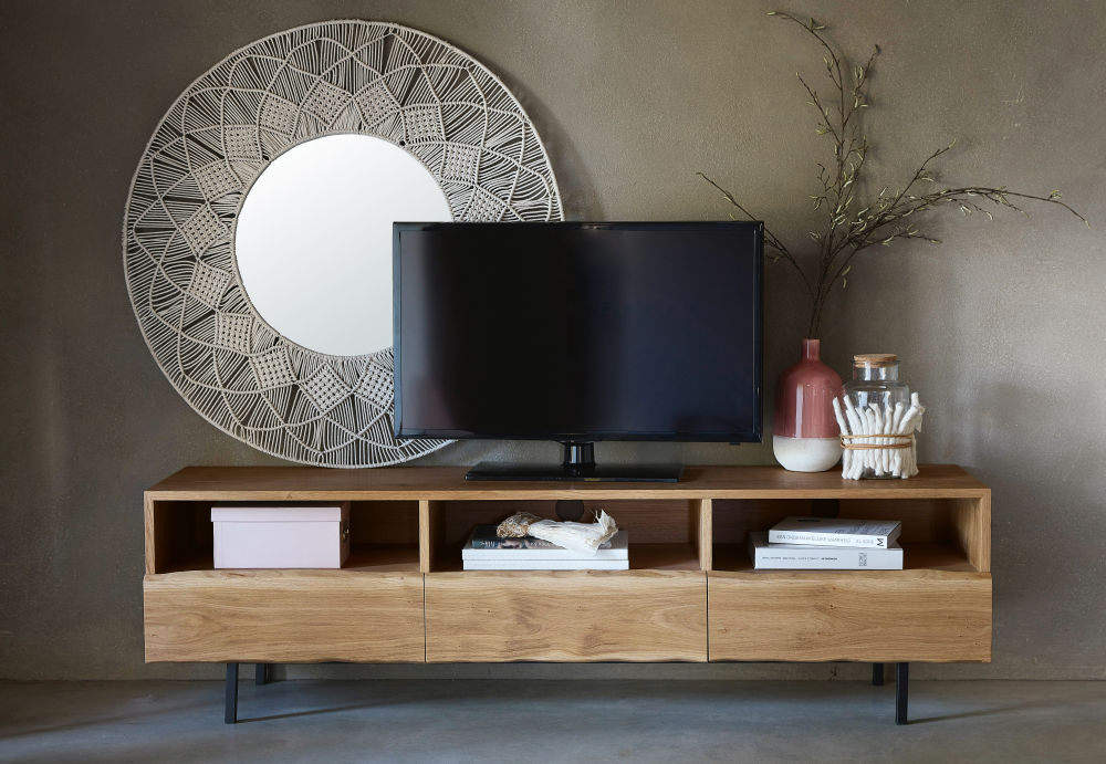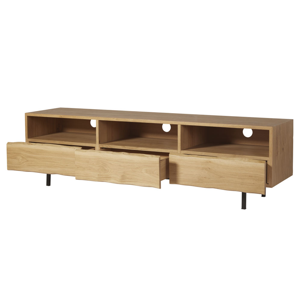 Le bois de ce meuble est certifiรฉ PEFC. Ce label garantit que le bois provient dโune forรชt gรฉrรฉe de maniรจre responsable : vous aussi, participez ร la prรฉservation des forรชts et de la biodiversitรฉ en choisissant ce produit. Donnez du caractรจre ร votre salon avec le meuble de TV 3 tiroirs en chรชne massif MAGNUS ! Avec sa structure en bois et ses pieds en mรฉtal, il s’associera parfaitement ร un style industriel. Cรดtรฉ rangement, vous profiterez des niches et des tiroirs de ce meuble TV pour y placer votre box internet, votre console et autres accessoires high-tech. De la sobriรฉtรฉ ร l’รฉtat brut qui conviendra aussi ร un dรฉcor de style scandinave, ร vous de voir !