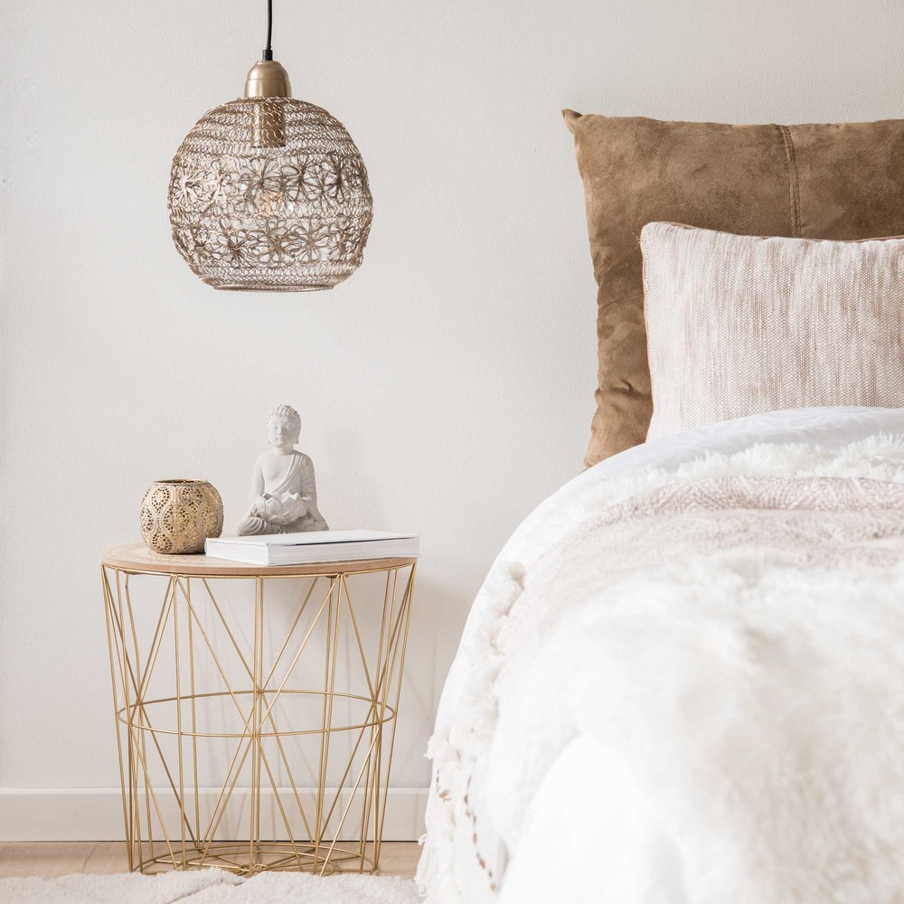 Design, originalité et élégance : tels sont les mots qui décrivent au mieux le bout de canapé filaire doré MANDALA. Il ajoutera une touche de fantaisie au salon et une pointe de modernité plus qu’appréciée. On craque pour sa structure filaire étonnante, sa teinte dorée flamboyante, mais surtout pour son plateau accompagné d’un motif mandala. Cette table d’appoint apportera un petit plus au salon, mais aussi dans d’autres pièces de la maison. On le détourne volontiers en guise de table de chevet ou en table d’appoint dans l’entrée.