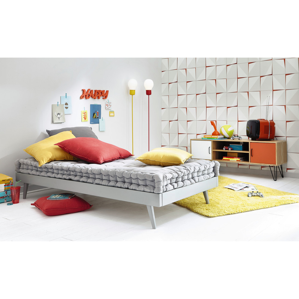 Tout moelleux, ce matelas gris sera parfait pour créer un lit d’appoint ou un coin détente dans la chambre de votre ado. Vous pouvez également utiliser ce matelas en coton pour aménager un espace de jeux dans une chambre d’enfant. Le détail déco : les capitons pour encore plus de confort. Notre conseil : associez-le au lit gris SIXTIES pour créer une belle banquette vintage et cosy.