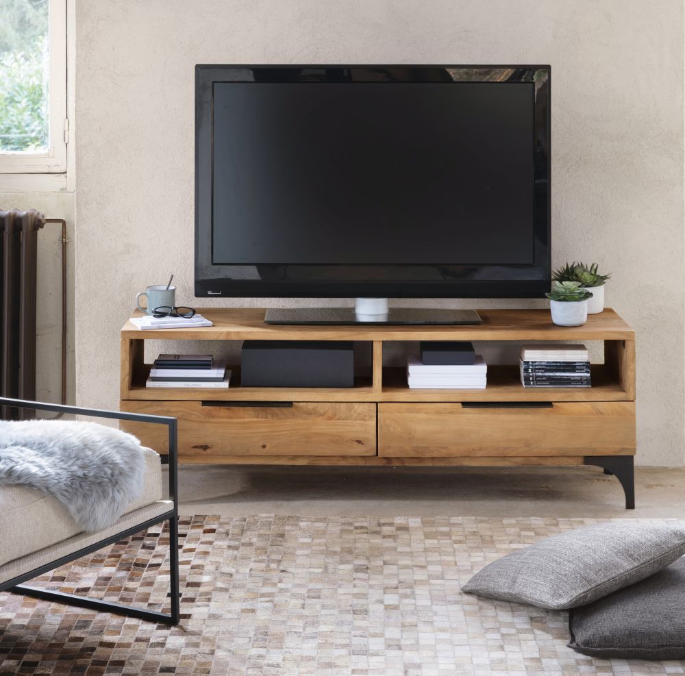 Le meuble TV en manguier massif METROPOLIS vous offrira les rangements nécessaires pour votre salon