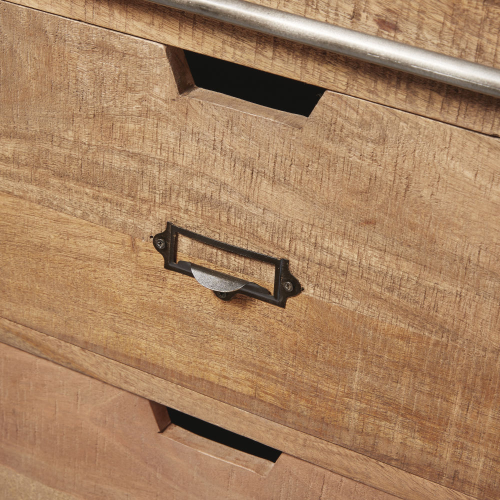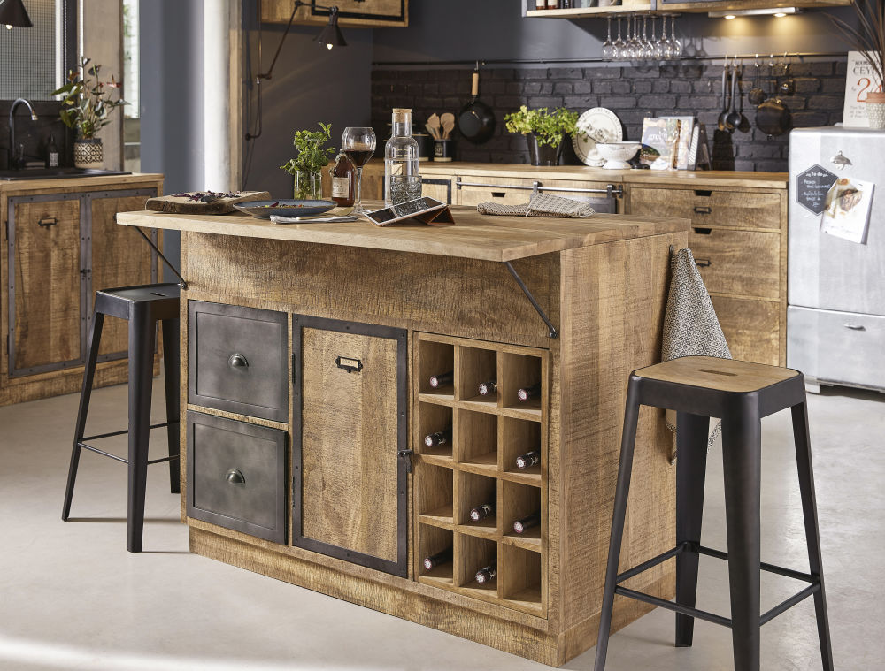 ร la recherche d’une cuisine au style industriel ? Rien de tel que le meuble bas 3 tiroirs 1 porte en manguier massif MELCHIOR pour satisfaire votre appรฉtit pour le style factory ! Laissez-vous sรฉduire par son alliance rรฉussie de manguier massif et de mรฉtal gris qui apportera du caractรจre et une touche d’authenticitรฉ ร votre espace. Notre coup de cลur : sa porte coulissante qui vous permettra de ranger vos condiments, bocaux et autres provisions ร l’abri de la poussiรจre. Pensez ร complรฉter ce meuble de cuisine avec une crรฉdence en carreaux de ciment noirs et blancs pour une ambiance d’atelier qui fera sensation. Optez pour les autres รฉlรฉments de la gamme MELCHIOR et faites de votre cuisine un espace qui vous ressemble !