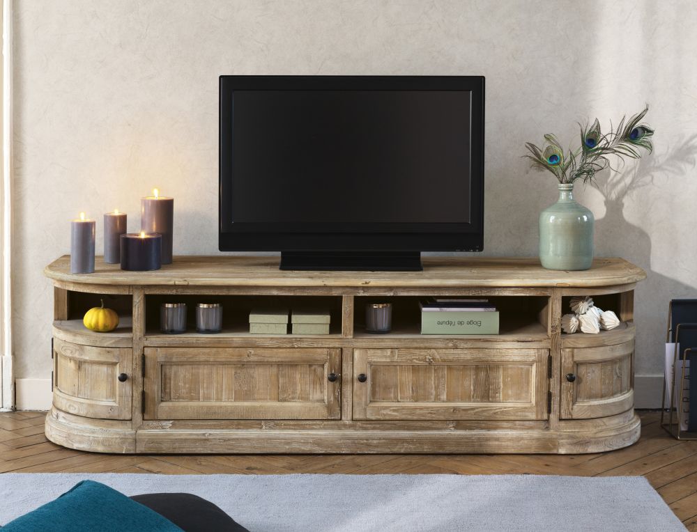 Mettez en valeur votre รฉcran grรขce au meuble TV 4 portes FLAUBERT. Rรฉalisรฉ en pin recyclรฉ avec une finition lรฉgรจrement cรฉrusรฉe, il apportera une touche raffinรฉe ร  votre espace de vie. Dotรฉ de quatre portes, ce meuble TV vous permettra de ranger facilement vos DVD, consoles et autre matรฉriel hi-fi. On apprรฉcie ses poignรฉes en mรฉtal noir qui modernisent son esprit classique chic.