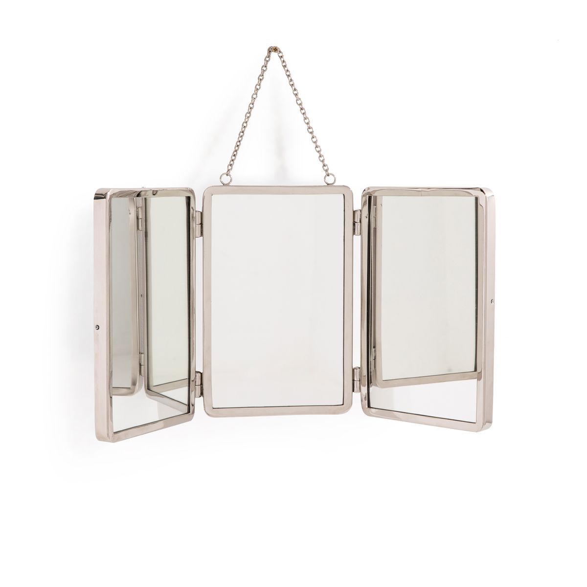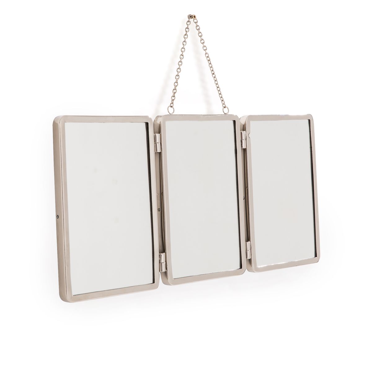 Tryptique ร l’ancienne, esprit barbier. Caractรฉristiques : โข Cadre en laiton nickelรฉ. โข ร suspendre