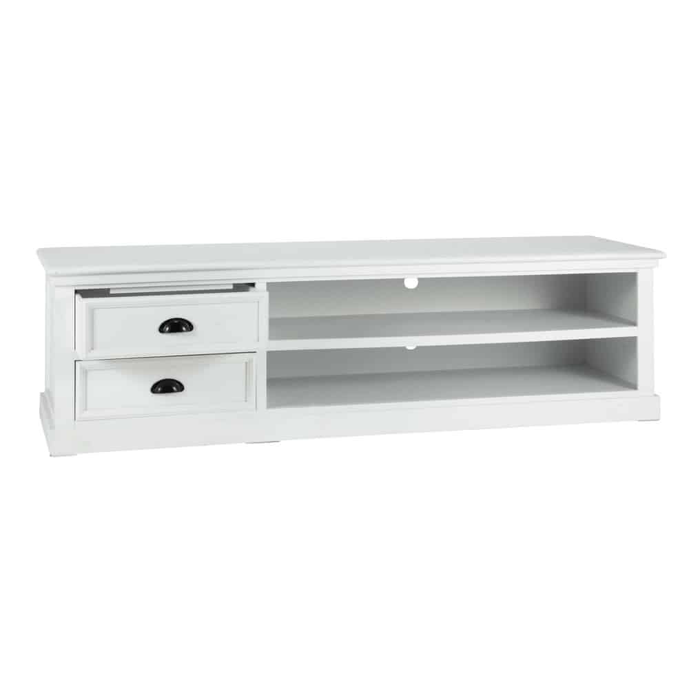 Le bois de ce meuble est certifiรฉ FSC. Ce label garantit que le bois est issu dโune forรชt gรฉrรฉe de faรงon responsable : vous aussi, participez ร la prรฉservation des forรชts et de la biodiversitรฉ en choisissant ce produit. En quรชte d’une dรฉco bord de mer ? Misez sur le meuble TV 2 tiroirs blanc NEWPORT ร l’allure marine. Dotรฉ d’un grand plateau, il vous offrira l’espace nรฉcessaire pour installer votre รฉcran. Sobre et fonctionnel, ce meuble TV possรจde รฉgalement 2 niches pour accueillir votre matรฉriel hi-fi. On craque pour ses poignรฉes coquille en mรฉtal noir qui apportent une touche moderne ร l’ensemble. Pratiques, les trous prรฉvus ร l’arriรจre des niches pour passer tous vos cรขbles !