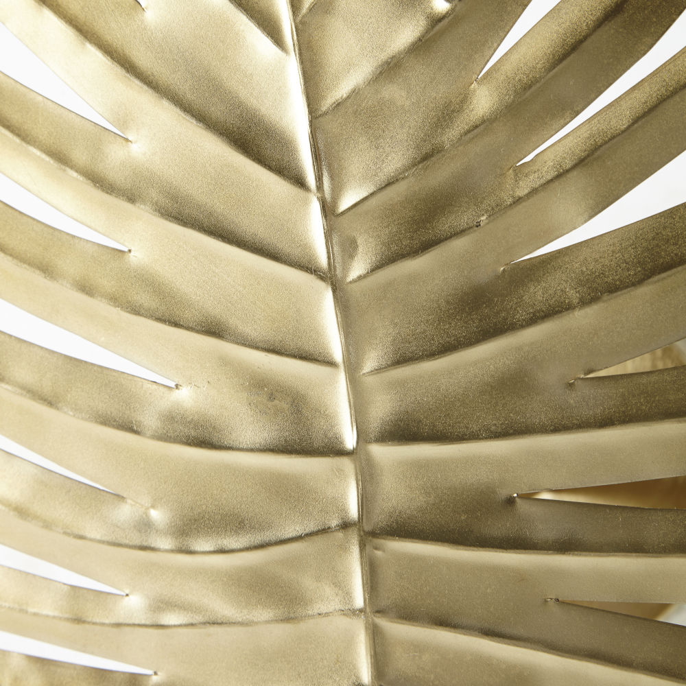 “Envie de voyage et d’évasion ? Rendez-vous sous les tropiques avec l’applique feuille en métal doré PALMA ! Donnez une ambiance exotique chic à votre intérieur grâce à ce joli luminaire mural en forme de feuille. On adore son originalité couplée à son métal doré qui en fait un luminaire unique ! Pour parfaire le look ‘jungle’, optez pour des objets en bambou tressé, des coussins aux motifs végétaux et un canapé couleur bleu pétrole. Quoi de mieux pour se dépayser ?”