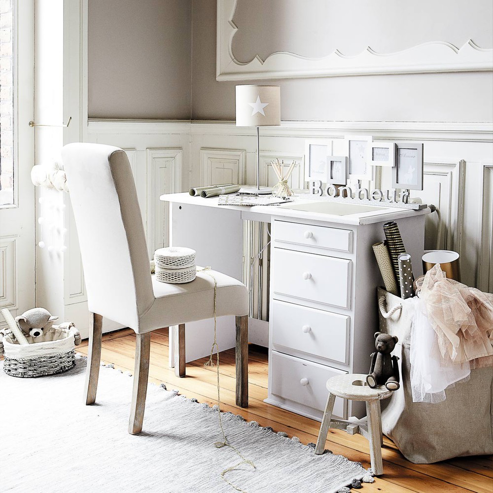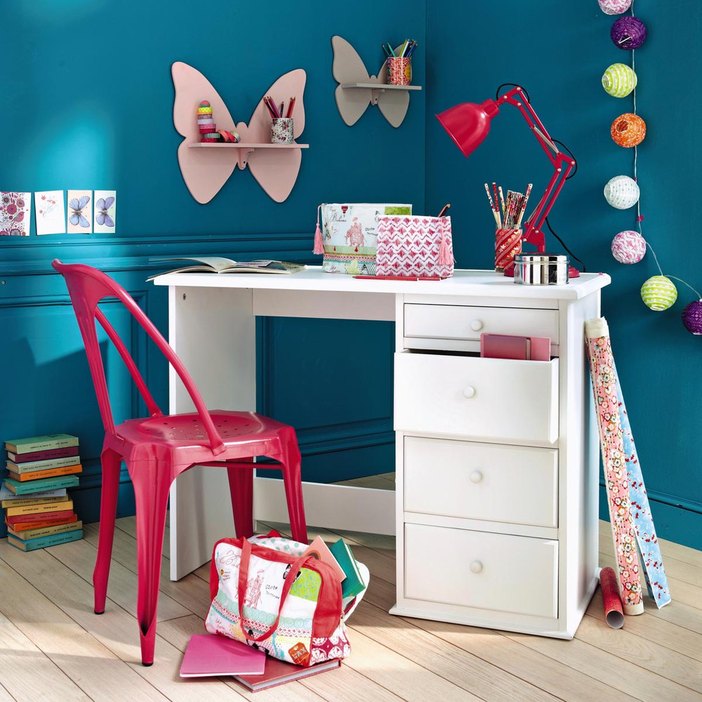 Le bois de ce meuble est certifié FSC. Ce label garantit que le bois provient d’une forêt gérée de manière responsable : vous aussi, participez à la préservation des forêts et de la biodiversité en choisissant ce produit. Pour votre enfant, optez pour la sobriété du bureau 4 tiroirs blanc PASTEL ! Épuré et classique, il pourra s’accorder à tous les meubles colorés et fantaisie de la chambre de votre ado. Il est doté d’un beau plan de travail et de 4 tiroirs de rangement : tout ce qu’il faut pour ses moments studieux et créatifs ! Peint en blanc, vous pourrez accessoiriser ce bureau d’une note vitaminée avec une lampe de bureau colorée et l’accompagner d’une chaise au style décalé !