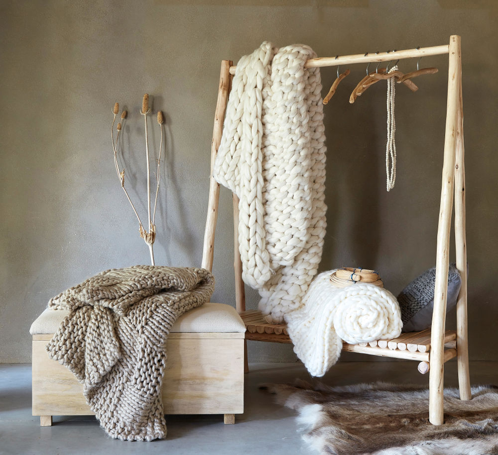 Laissez-vous charmer par la tendance Hygge en adoptant le portant en eucalyptus et 6 cintres IKAST !
