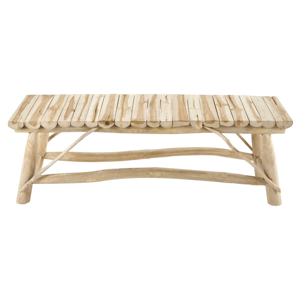 Réalisé à partir d’un assemblage de branches de bois, ce banc en teck REFUGE trouvera sa place parto