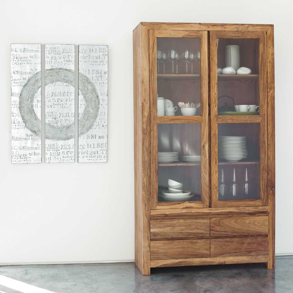 Chaleur et sobriété sont de mise avec la vitrine en sheesham massif STOCKHOLM : parfait pour tous le