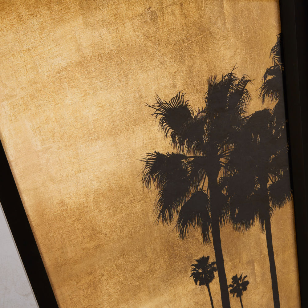 Retrouvez tous les soirs la douceur paisible d’un coucher de soleil paradisiaque avec ce triptyque palmiers noir et doré SUNSET. Pour une ambiance relaxante et exotique dans votre chambre, il s’associera à merveille avec une tête de lit en rotin et un tapis en jute. Entourez votre triptyque de deux lanternes tressées pour une ambiance lumineuse et feutrée.