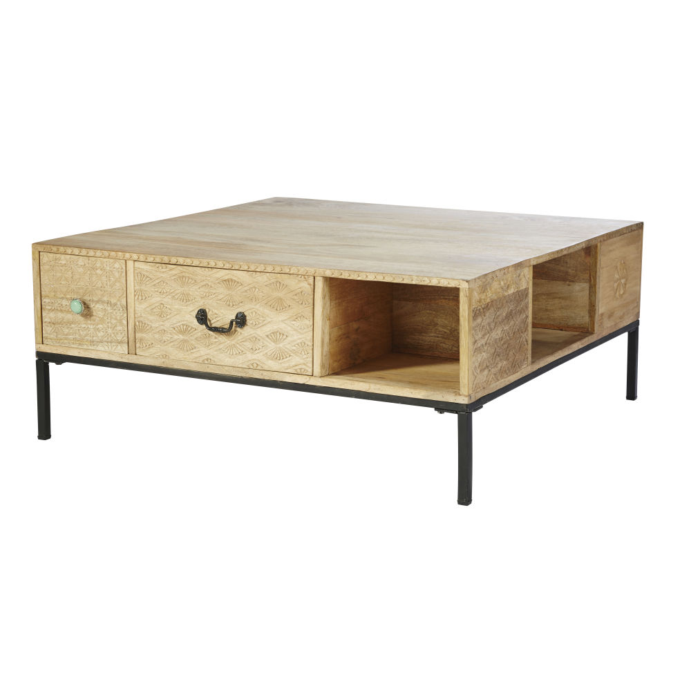 L’Amérique du Sud s’invite dans votre intérieur avec la table basse carrée 4 tiroirs en manguier mas