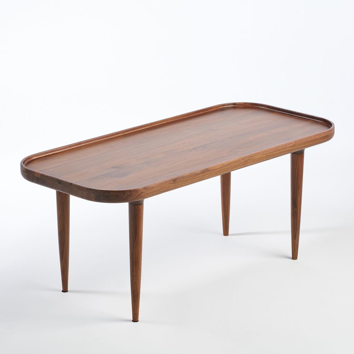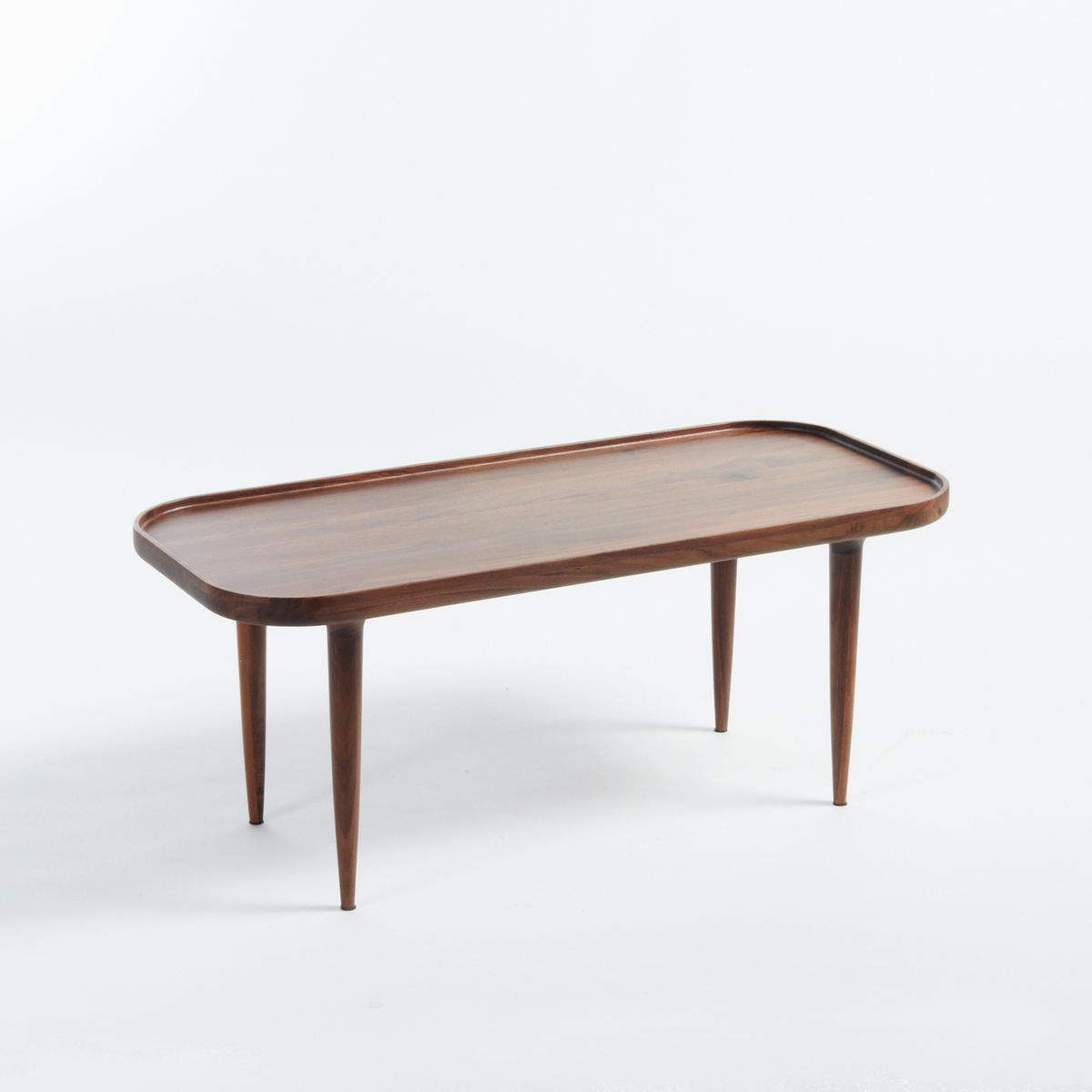La table basse Magosia. Pieds stiletto, fin plateau et rรฉalisation en noyer massif, cette longue table basse รฉtroite sera parfaite devant votre canapรฉ ou ร utiliser en table gigogne avec la grande table basse Magosia vendue sur le site.